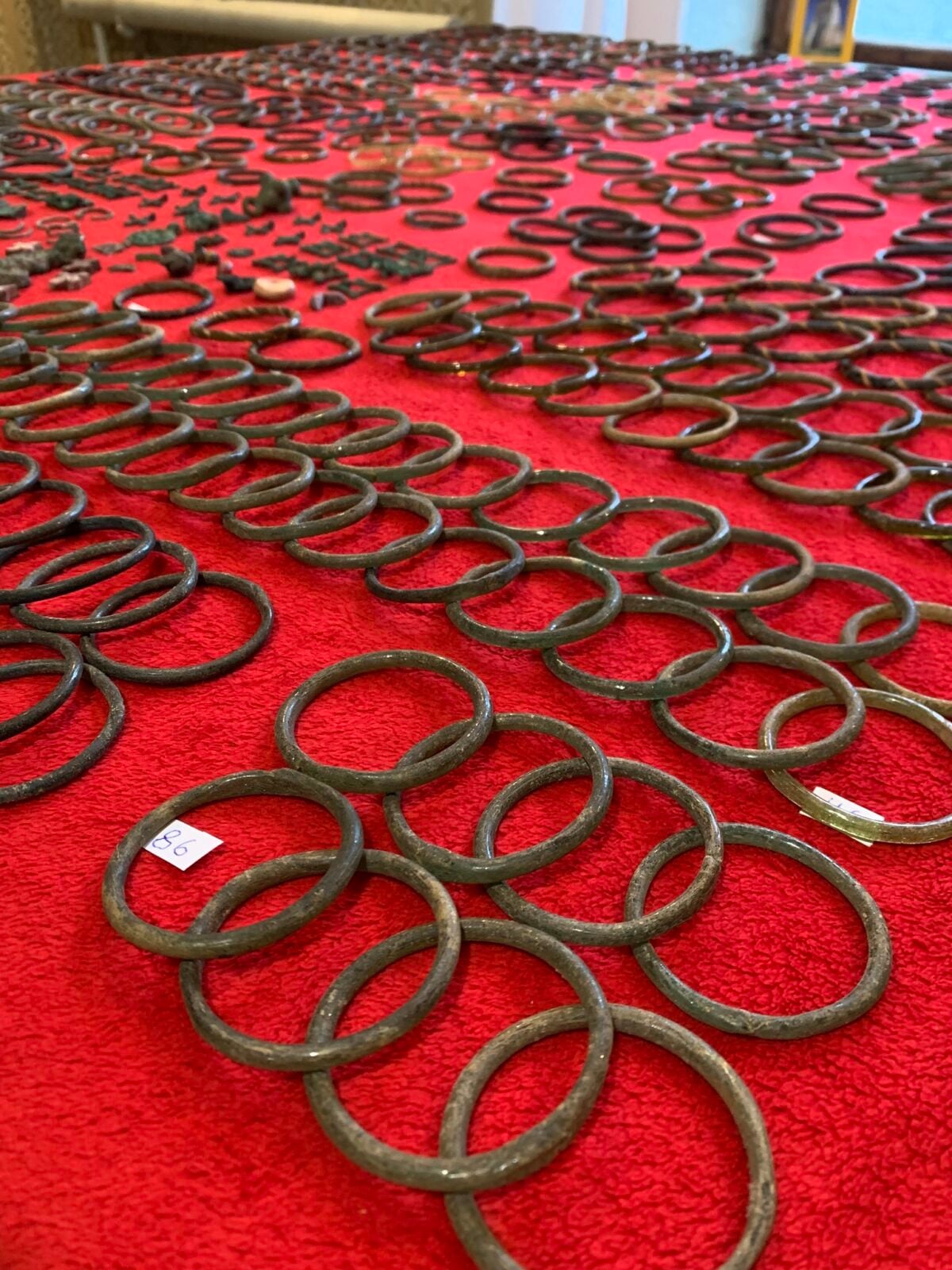 Sercem skarbu jest kolekcja 573 kompletnych, szklanych bransolet. To liczba, która robi wrażenie, zwłaszcza gdy uświadomimy sobie, że wcześniej na tych terenach nie znaleziono nigdy takiego zestawu nieuszkodzonych ozdób. Badacze wyodrębnili wśród nich aż 109 różnych typów: od spiralnie skręconych po gładkie i o przekroju trapezowym. Zachwyca ich kolorystyka: zieleń, błękit, fiolet, żółcień i złoto. Średnica każdej z nich mieści się między 4 a 6 centymetrów. Datowanie jest tu kluczowe. Wszystko wskazuje na to, iż kosztowności zostały ukryte pod koniec zimy 1241 roku. To moment, w którym armia Batu-chana, wnuka Czyngis-chana, parła na zachód, siejąc postrach. Właściciel, najprawdopodobniej kupiec, w ostatniej chwili przed katastrofą zdecydował się zakopać swój towar. Jego nadzieja na powrót po ustaniu niebezpieczeństwa nigdy się nie spełniła. Dla nas to szczęście w nieszczęściu, bo dzięki jego desperackiej decyzji mamy dziś niezwykle kompletny zbiór.