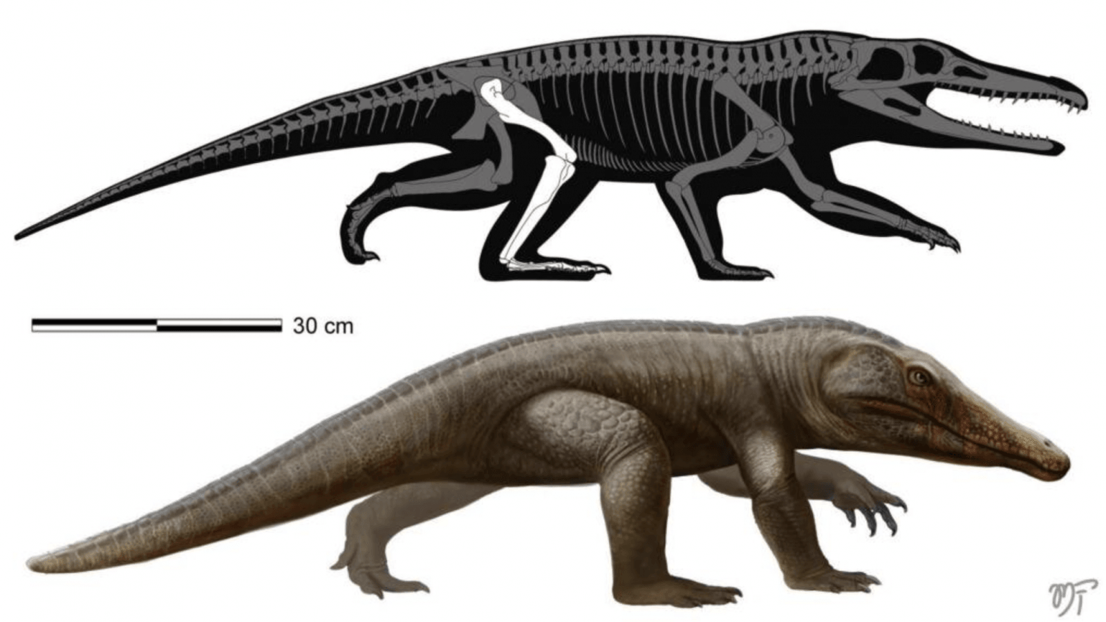 Charakteryzująca się wydłużonym pyskiem, rodzina Proterochampsidae to mięsożerny klad endemiczny dla Ameryki Południowej, a jego zapis kopalny rozciąga się od wczesnego karniku do późnego karniku/wczesnego noryku. Gnieżdżąc się blisko archozaurów, jest to kluczowy klad dla naszego zrozumienia starożytnych gadów. Niestety, elementy tylnych kończyn są zwykle słabo zachowane u tej grupy, dlatego ich anatomia pozbawiona jest szczegółowych opisów.