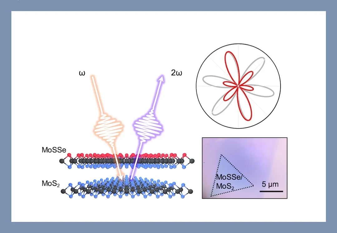 Aby sprawdzić, jak dokładnie światło wpływa na materiały janusowe, badacze oświetlali próbki laserem o różnych długościach fali. Pracowali z dwuwarstwowym materiałem zbudowanym z molibdenu, siarki i selenu. Podczas eksperymentu obserwowali zjawisko zwane generacją drugiej harmonicznej – materiał emituje światło o dwukrotnie większej częstotliwości niż to, które na niego pada. W normalnych warunkach taki sygnał ma symetryczny, sześciopłatkowy kształt, przypominający kwiat. Jednak gdy światło zaczęło oddziaływać na atomy, wzór uległ zniekształceniu.