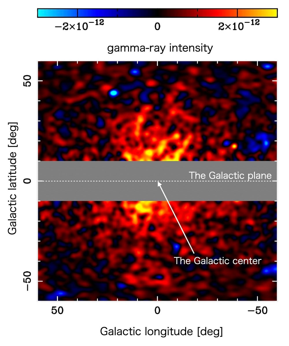 Prof. Tomonori Totani z University of Tokyo przeanalizował najnowsze dane z NASA Fermi Gamma-ray Space Telescope, obejmujące obszar około 100 stopni wokół centrum galaktyki. Po usunięciu promieniowania pochodzącego z płaszczyzny Drogi Mlecznej oraz innych znanych źródeł astrofizycznych wyodrębniono komponent o morfologii halo, którego kształt odpowiada przewidywanemu rozkładowi ciemnej materii.