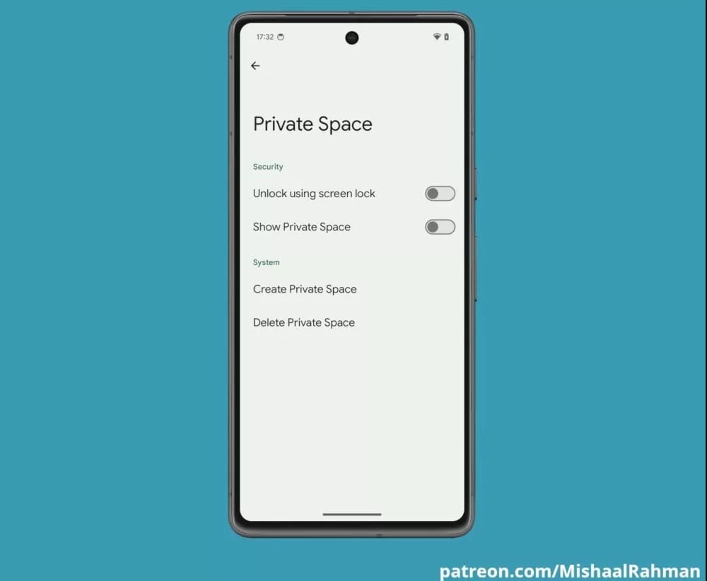 Znany leaker Mishaal Rahman zauważył w systemie Android 14 QPR2 Beta 1 nową stronę ustawień o nazwie „Przestrzeń prywatna” (ang. Private Space). Włączenie tej opcji powoduje utworzenie nowego profilu użytkownika w systemie Android skategoryzowanego jako „prywatny”.
