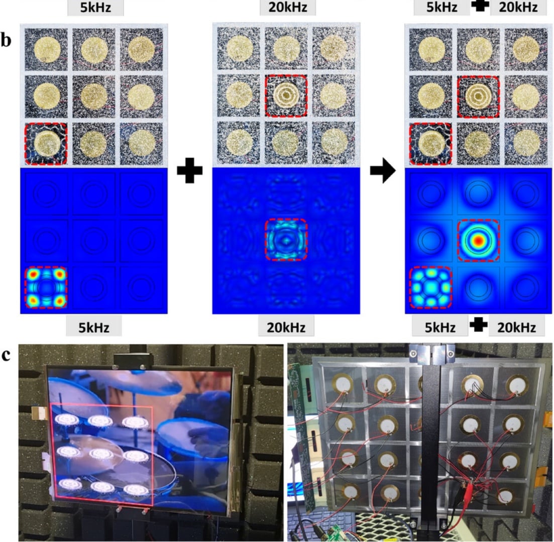 W tym projekcie konstruktorzy skupili się na redukcji zakłóceń między elementami przekazującymi sygnał akustyczny. Gdy takie zakłócenia są obecne, występuje zjawisko znane jako crosstalk lub przesłuch. Wzajemne interferencje między elementami mogą znacznie pogorszyć jakość dźwięku, jaki dotrze do widza. Naukowcy zastosowali metodę redukcji przesłuchów, bazującą na materiałach, które tłumią drgania boczne i na odpowiednim sterowaniu amplitudą i fazą drgań. To z nich została wykonana „kratka” wyznaczająca pola, na których umieszczone są elementy wibrujące.