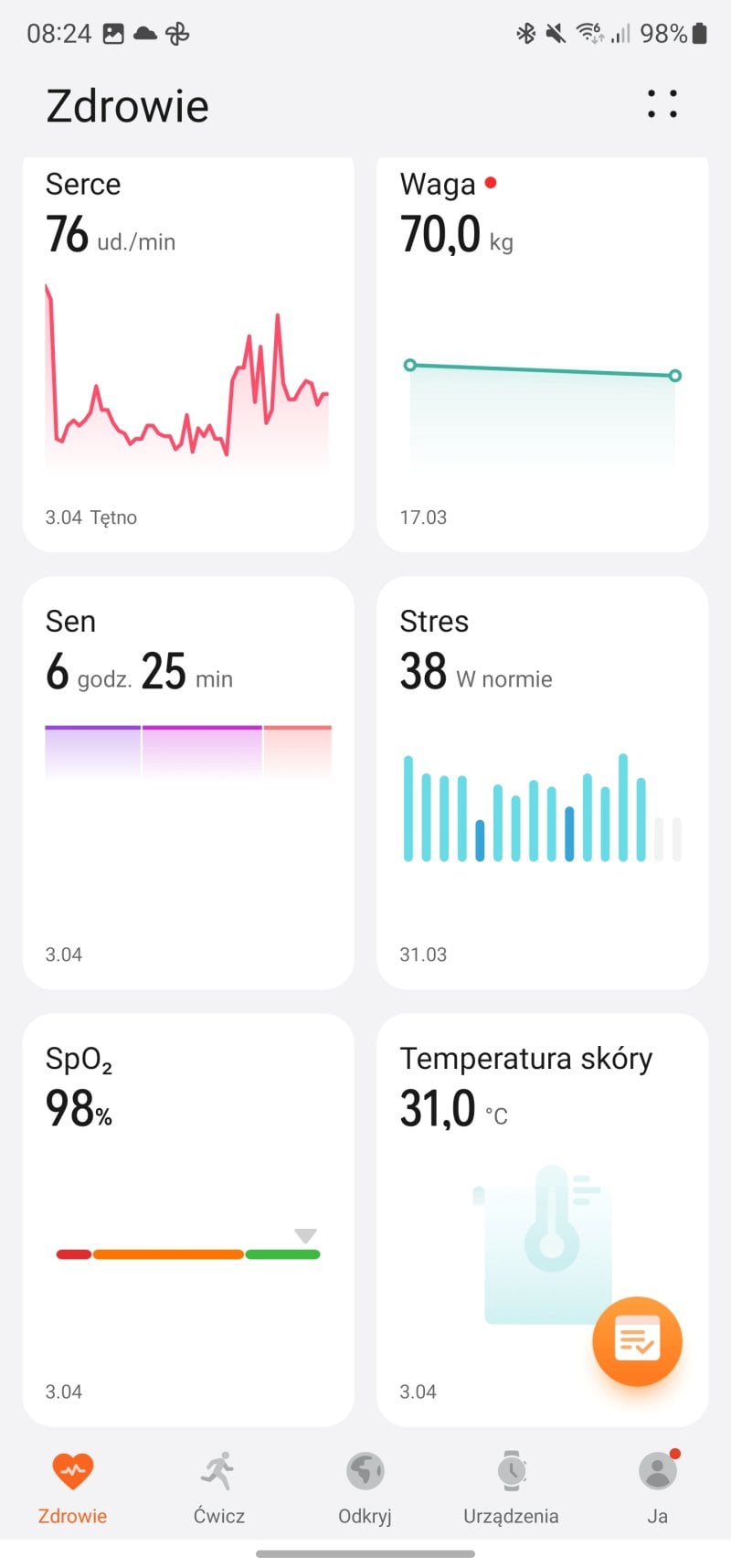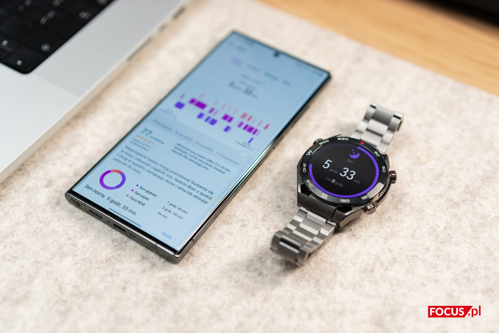 Znajdziemy tu wszystkie pomiary, jakich możemy oczekiwać po współczesnych smartwatchach – tętno, EKG, pomiar stresu, pomiar wysycenia krwi tlenem, temperaturę skóry i bodajże najbardziej zaawansowaną analizę snu spośród wszystkich inteligentnych zegarków.