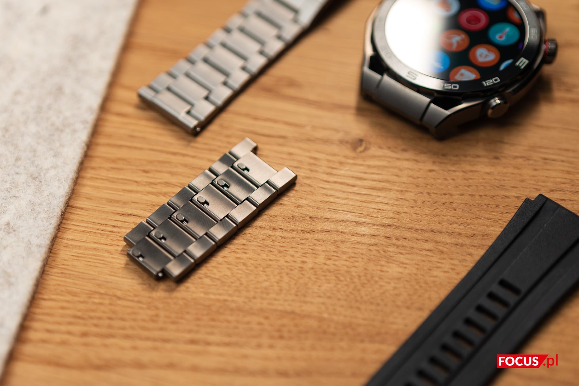 Warto nadmienić, że zarówno pasek, jak i bransoleta wyposażone są w mechanizm quick fit, więc do ich wymiany czy do regulacji ogniw bransolety nie potrzebujemy żadnych narzędzi.
