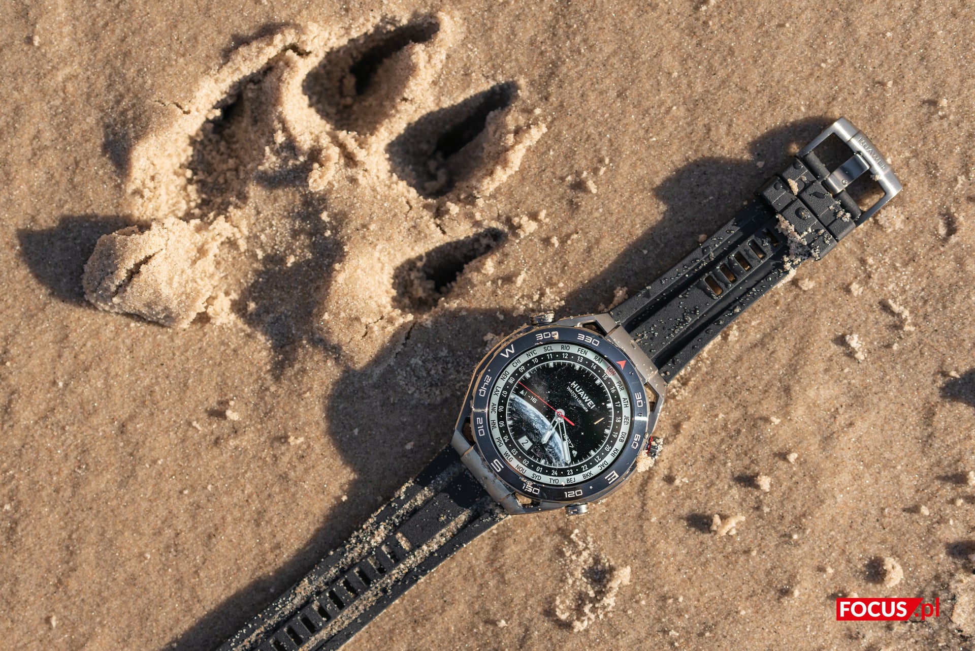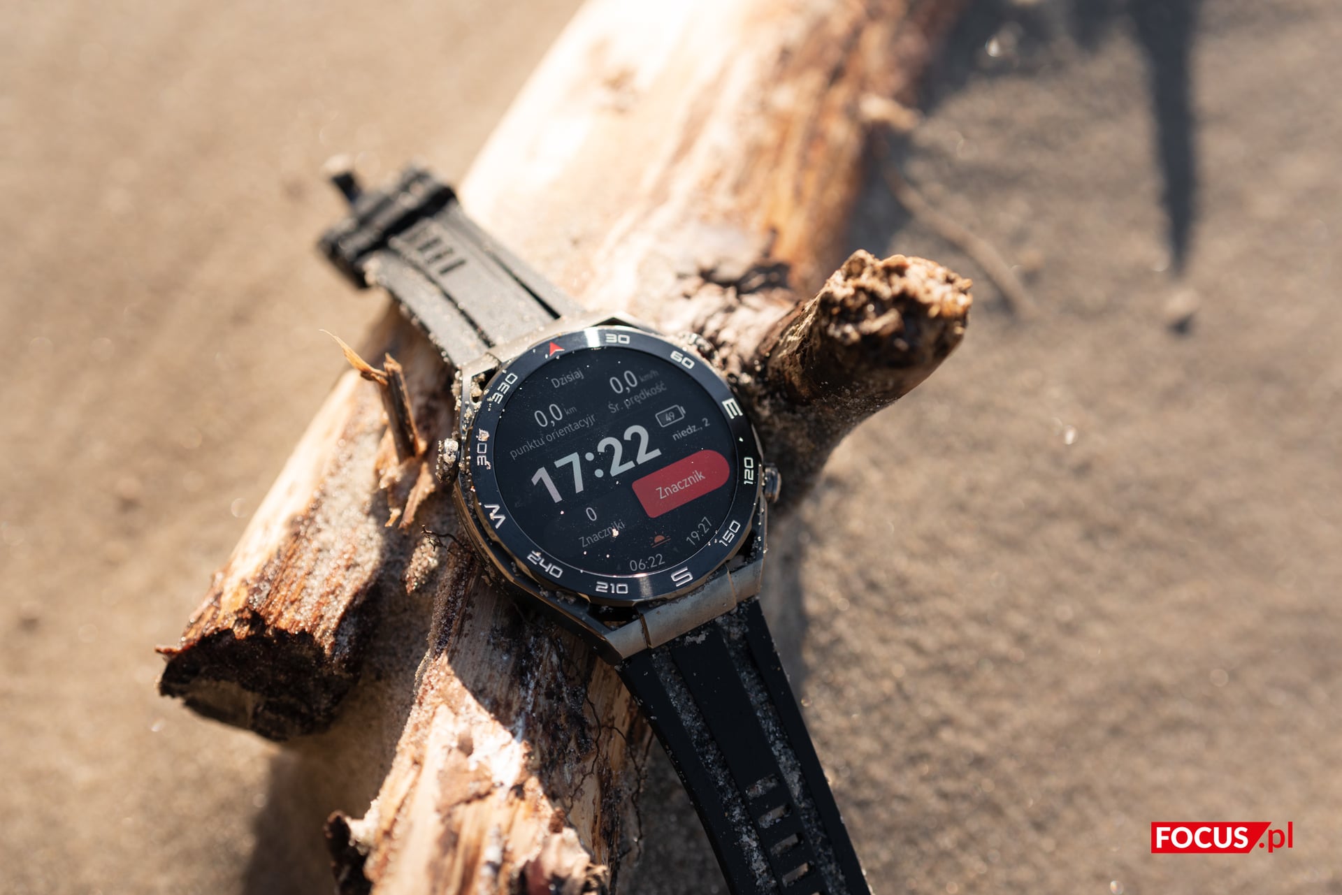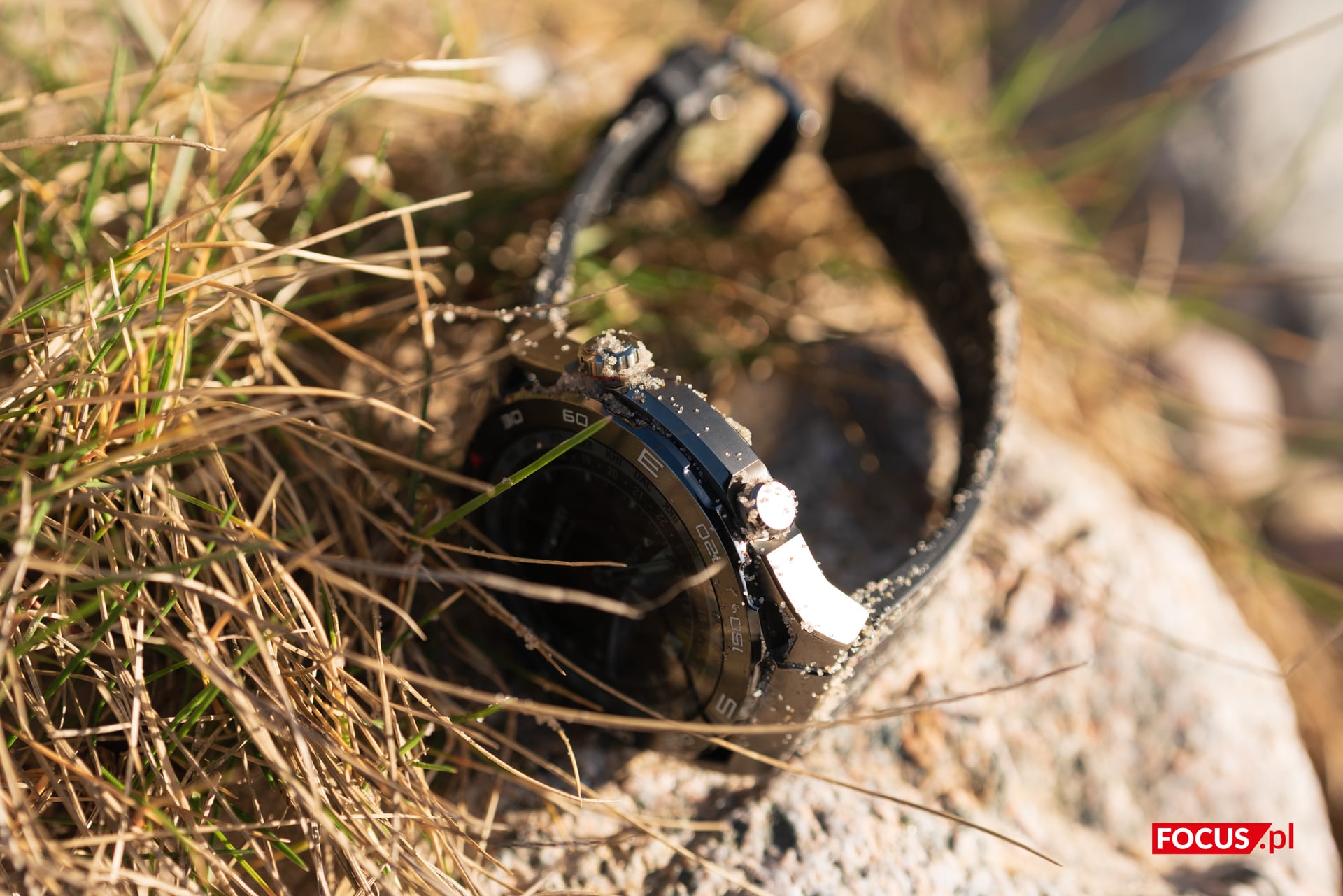 Korzystałem z Huawei Watch Ultimate w każdych warunkach, od kilkustopniowych mrozów i śniegu (w marcu, niech żyją zmiany klimatu), poprzez nadmorski piach i słoną wodę Bałtyku, aż po pracę w przydomowym ogródku. Niejeden raz zdarzyło mi się gdzieś niechcący “przytrzeć” obudową, a w czasie robienia zdjęć nad morzem zegarek stoczył się z kamieni prosto w mokry piach, gdzie momentalnie zalała go silna fala wody. Mimo to śladów zużycia nie stwierdzono.