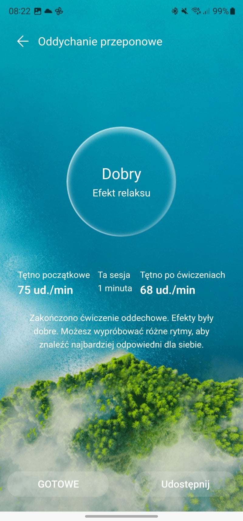 Aplikacja Huawei Zdrowie oraz zegarek mają także zintegrowane ćwiczenia oddechowe oraz monitoring stresu. O ile ćwiczenia oddechowe są bardzo przydatne i pozwalają się wyciszyć, tak monitoring stresu polecam od razu wyłączyć i dokonywać pomiarów ręcznie; automatyczny, całodobowy pomiar drenuje bowiem akumulator w stopniu większym niż jakiekolwiek inne pomiary. A skoro o tym mowa…