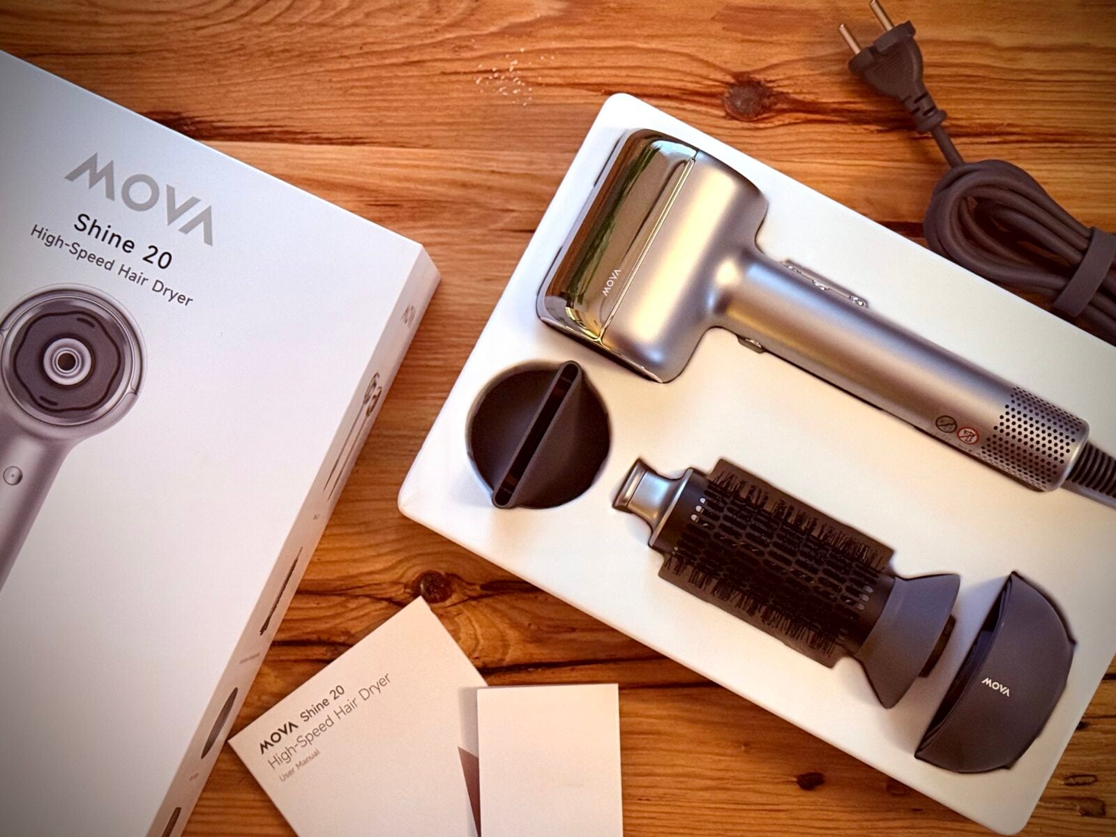MOVA Shine 20 to suszarka z tych, które nie robią wokół siebie wielkiego widowiska, tylko po prostu codziennie dowożą to, co obiecują. Szybkie i równe suszenie, pilnowanie temperatury za użytkownika, niższy hałas i wyraźnie lepsza kondycja włosów po każdym użyciu to jej najważniejsze atuty. Silnik wysokich obrotów, kontrolowany strumień, pomiar odległości i plazmowa jonizacja składają się na sprzęt, który potrafi realnie zmienić odczucia z tak zwykłej czynności, jak suszenie włosów.