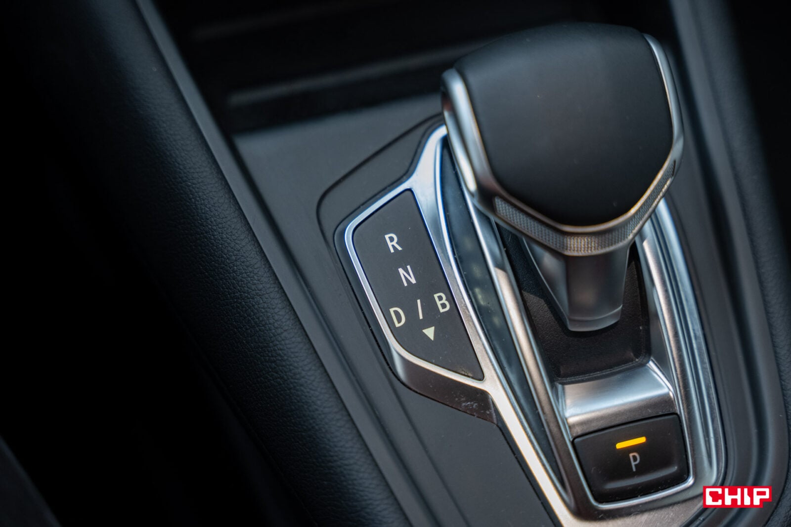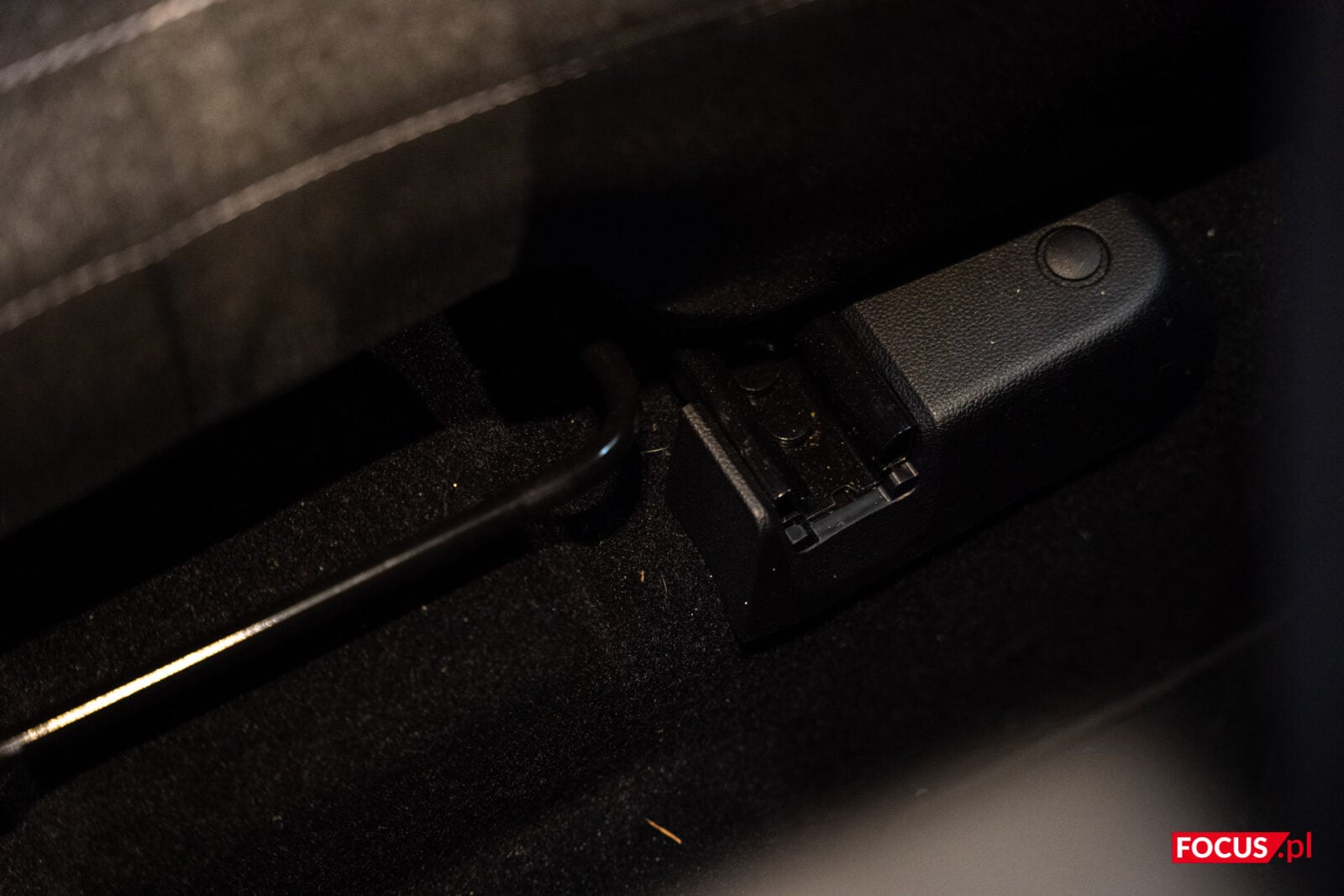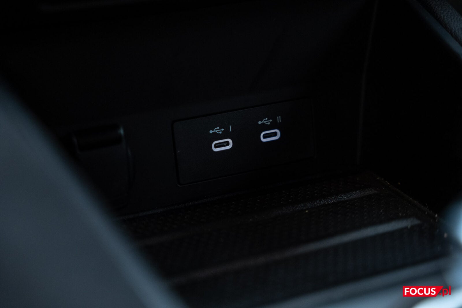 Tunel środkowy w tym samochodzie z pewnością nie ma w sobie nic szczególnego. Ot, podparcie z opcją podniesienia celem uzyskania schowka. Pod nim pojemniki mieszczące dwa kubki, kilka przycisków i kolejny schowek, w tej wersji z ładowaniem indukcyjnym. Powyżej kolejny rząd w tunelu, tym razem z dźwignią zmiany “biegów”, która tak naprawdę stanowi przełącznik z wibracjami i lekkim klikiem niż faktyczną dźwignię. Łapałem się na tym, że próbuję skorzystać z rozwiązania używając zdecydowanie więcej siły niż potrzeba. Nad nim kolejny schowek, tym razem z dwoma portami USB-C.