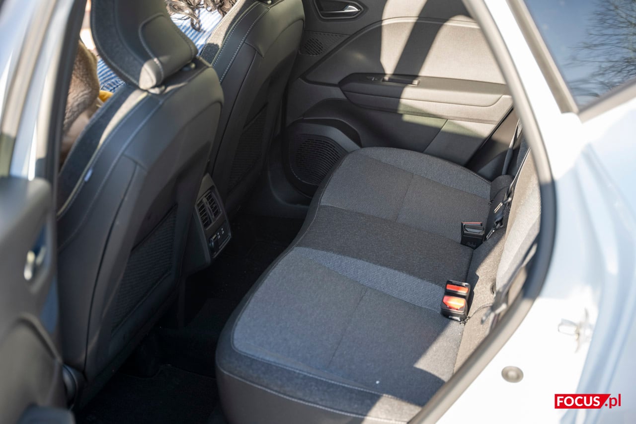 Jeśli jednak zrezygnujemy z przestrzeni bagażnikowej, to z tyłu siedzi się całkiem komfortowo. Fotele wyprofilowano tak, by osiadać w nich dość głęboko, a przez to mieć więcej miejsca na nogi. Przy 190 cm co prawda pewien rozkrok to mus, ale na dłuższą metę nie czułem dyskomfortu. W większości scenariuszy również i osoba siedząca na centralnej części kanapy powinna mieć wygodny przejazd, zwłaszcza, że znajdzie przestrzeń do wywleczenia nóg bez unoszenia ich nad linię wywietrzników.