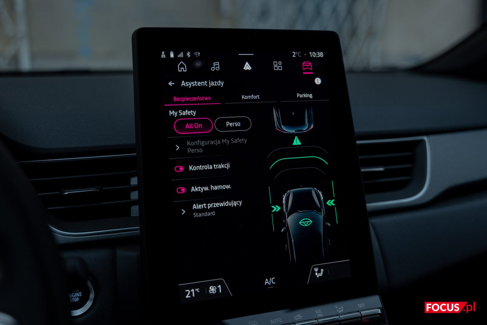 Znajdziemy za to cały zestaw ustawień dotyczących asystentów jazdy. Renault chwali się, że w samochodzie znajduje się 26 asystentów. Jednych doceniam, jak system utrzymania odległości na drugim pasie, który w połączeniu z odpowiednią prędkością na tempomacie niemal jedzie za nas po autostradzie. Inne rozwiązania, jak utrzymywanie samochodu w obrębie pasa, działają zbyt agresywnie, niezależnie od tego, jak niską intensywność pracy im ustawiłem. Ten system ma zero tolerancji dla lekkiego najechania tylną osią na pas podczas ostrzejszego zakrętu i nieraz bywało to irytujące, szczególnie ze względu na duży opór kierownicy.