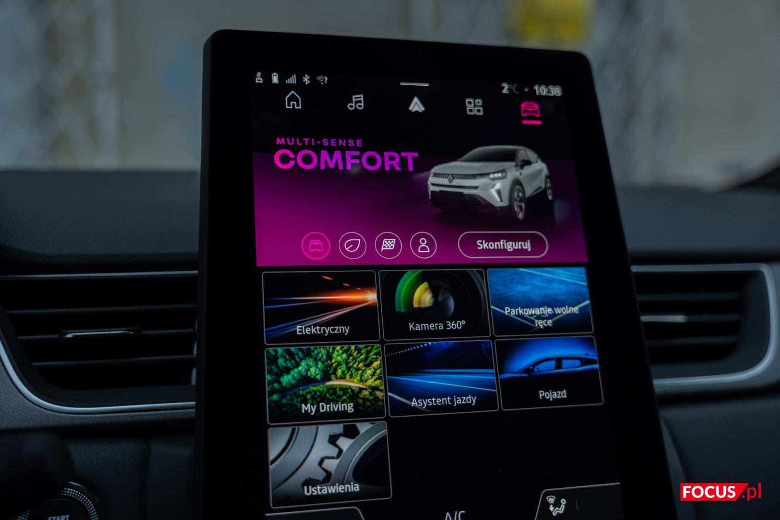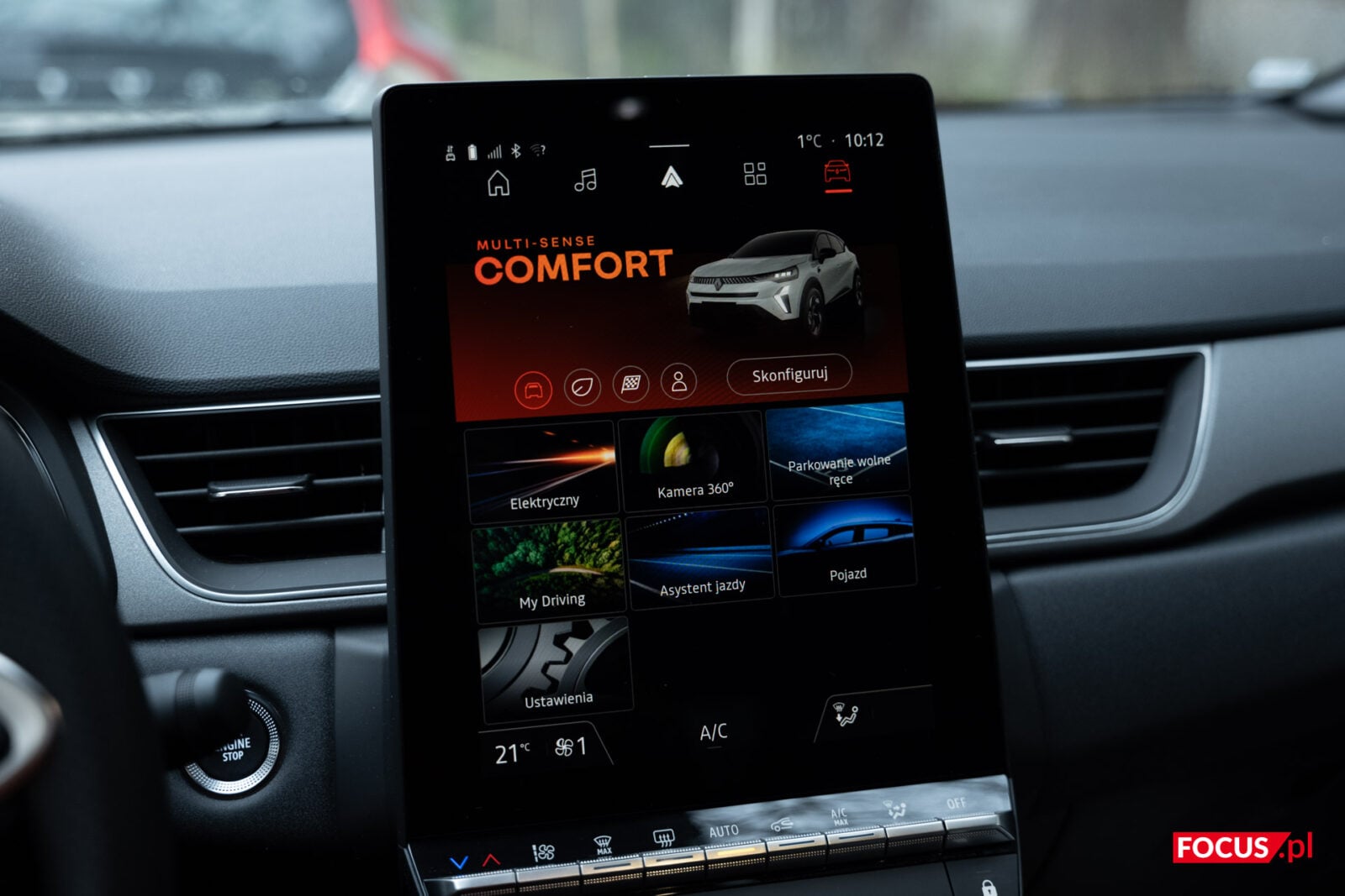 W środku znajdziemy ustawienia Eco, Perso, Sport oraz Comfort. Każde z nich ma trochę inną specyfikę w zależności od nazwy i w teorii to Perso powinno być najbardziej przeznaczone dla nas. W praktyce najlepiej jechało mi się w ustawieniu komfortowym, a sportowe wcale nie wykrzesa z samochodu nowych pokładów sił ani nawet nie poprawi przyspieszania na pasach (za to i tak będzie odpowiadała jednostka elektryczna). Do każdego przypisany jest także inny kolor podświetlenia wewnątrz, a jeśli mamy ochotę, możemy to zmienić w ustawieniach.