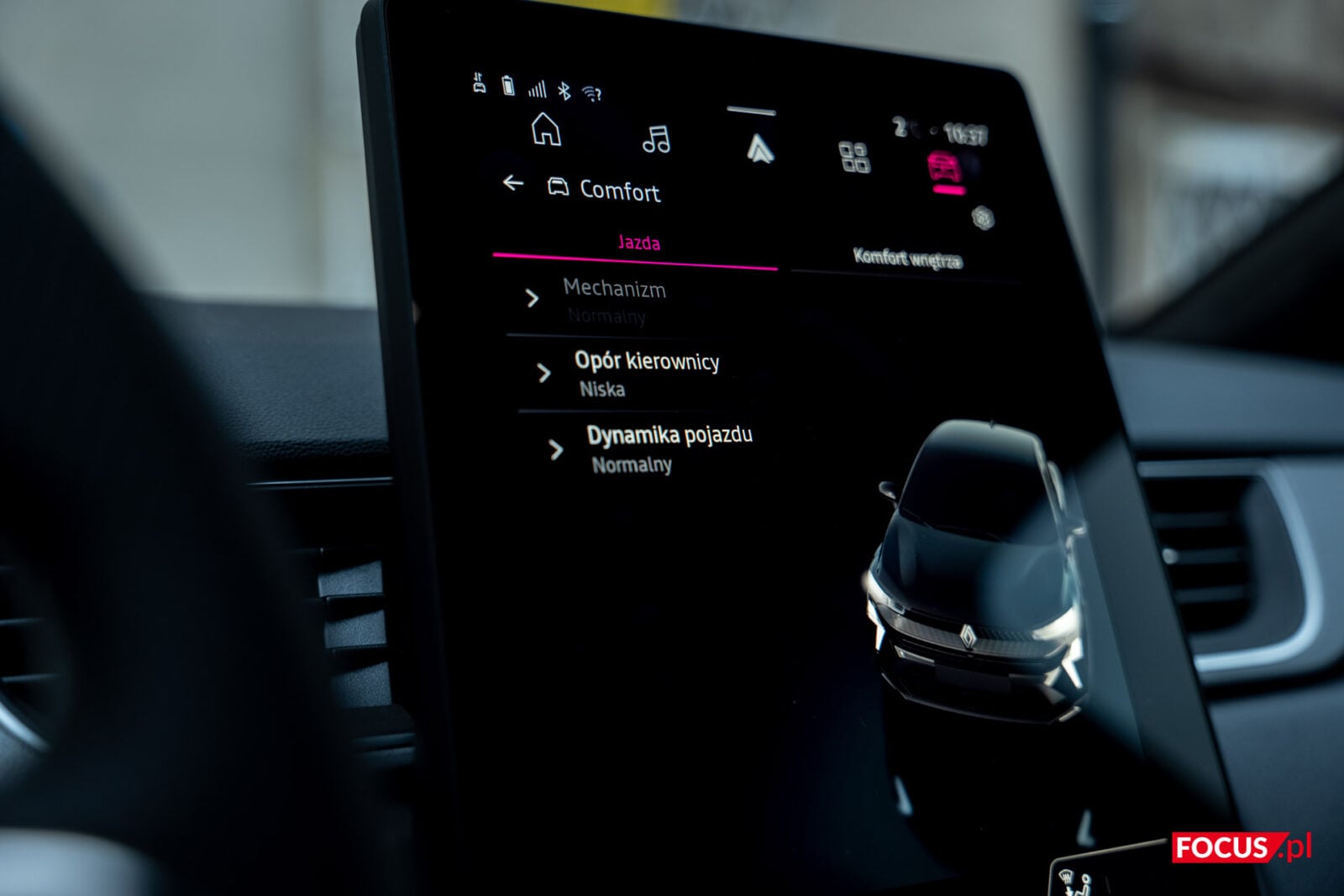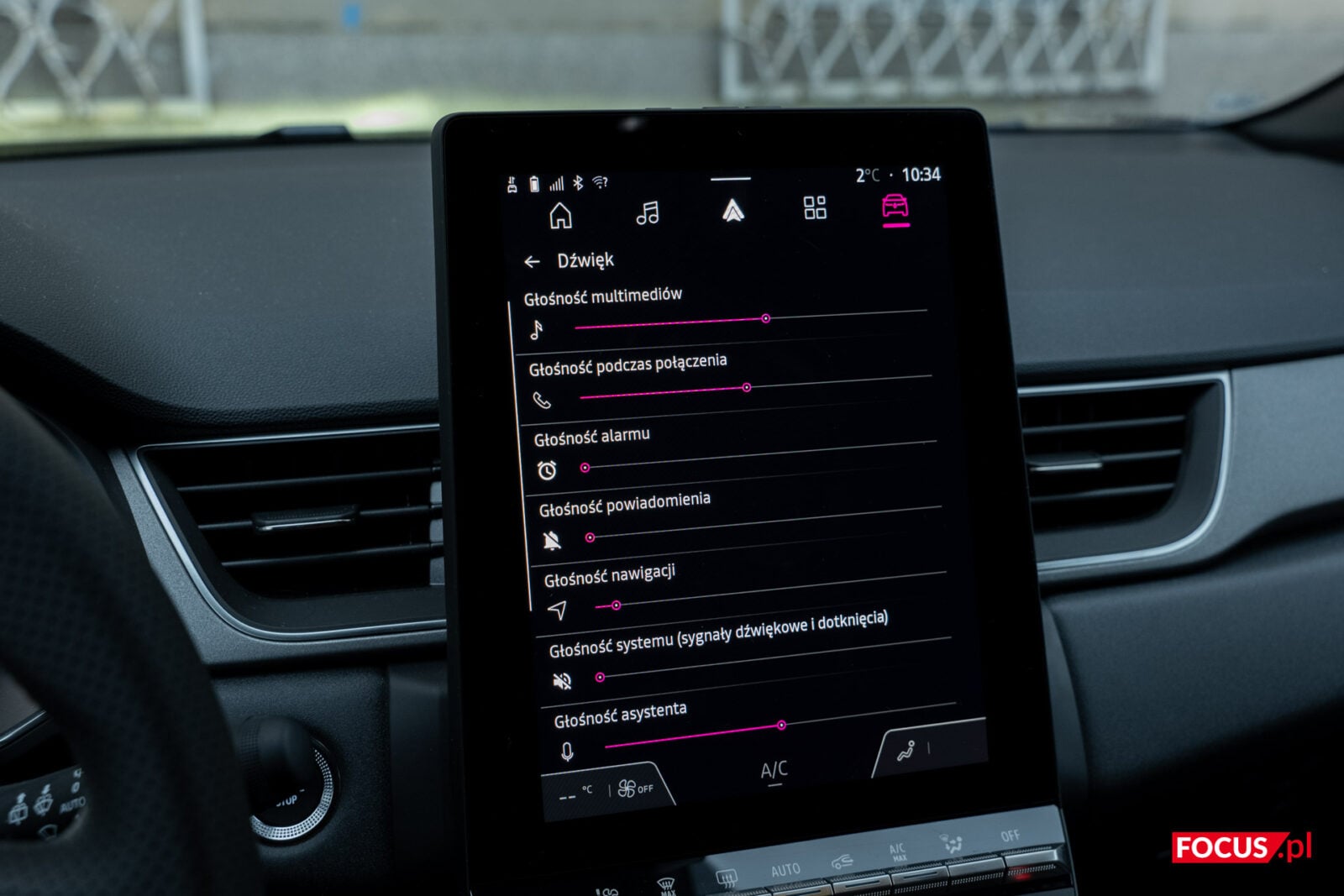 W ustawieniach znajdziecie niemal wszystko, co powinniście w nowoczesnym aucie. Osobiście odczuwam brak korektora graficznego i ustawień dźwięku, bo domyślne ustawienie nie daje się popisać systemowi audio. W efekcie dostajemy bardzo wypośrodkowany miks, z którego nie wyciągniecie dużo dla siebie, zwłaszcza gdy słuchacie czegoś innego niż podcasty i pop.