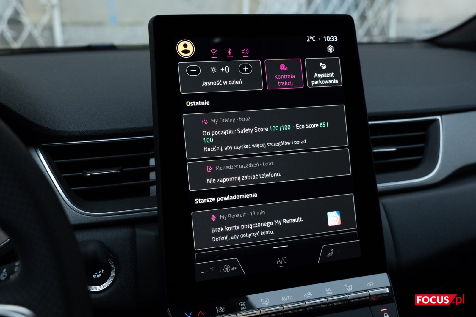 Co jednak ważne, pobieranie aplikacji wymaga zalogowania się do Google Play z użyciem konta Google. Oprócz tego samochód prosi nas o skorzystanie z konta My Renault, ale to posłuży do zbierania statystyk z jazdy, takich jak Safety Score (wynik bezpieczeństwa) i Eco Score (wynik ekologii jazdy) oraz sprawdzania z poziomu smartfonu poziomu płynów czy naładowania. Większość funkcjonalności w aucie nie wymaga od nas żadnego logowania. Oby tak zostało.