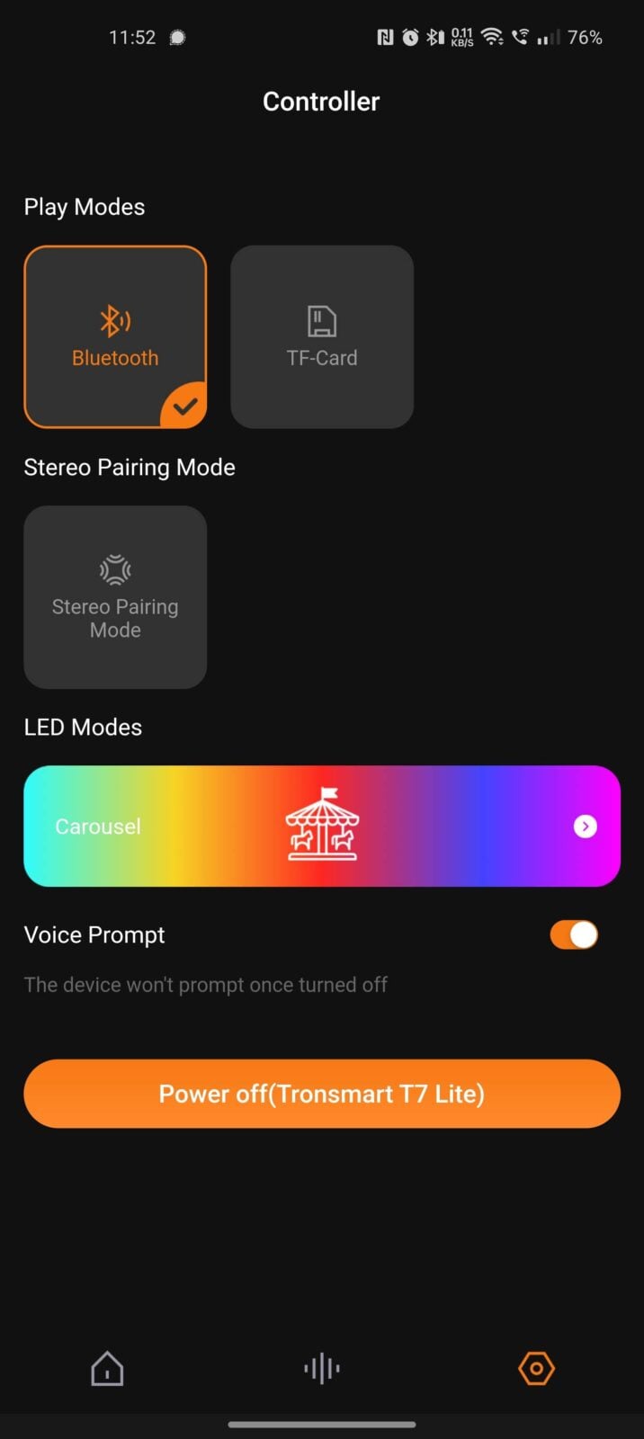 Tronsmart postanowił bowiem ograniczyć T7 Lite wyłącznie do dwóch źródeł utworów, bo urządzeń połączonych po Bluetooth 5.3 (wtedy głośnik wykorzystuje kodek SBC) i właśnie karty pamięci. Wspomniane wcześniej radiatory odpowiadają z kolei za podbijanie niskich tonów, wspomagając parę 24-watowych przetworników stereo, których brzmienie na paśmie przenoszenia rzędu 60-20000 Hz możemy dostosować z poziomu aplikacji lub wciskając przycisk SoundPulse, będący w rzeczywistości opatentowanym ustawieniem equalizera.