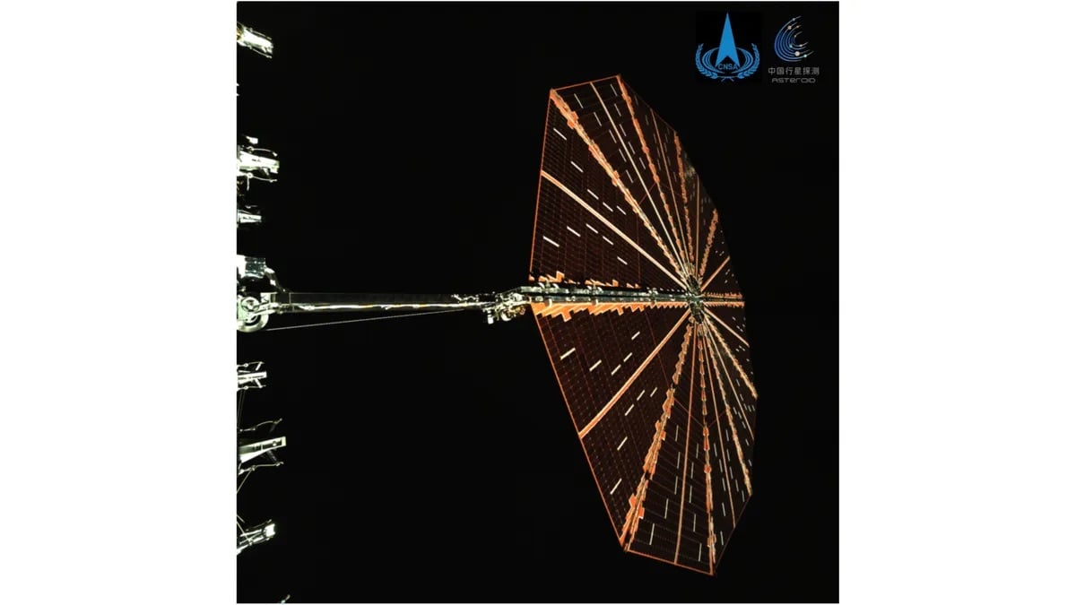 Co niezwykle jednak ciekawe CNSA zaprezentowała właśnie pierwsze zdjęcie wykonane przez kamerę inżynieryjną zamontowaną na pokładzie sondy. Fotografia przedstawia okrągły panel słoneczny sondy Tianwen-2, przypominający konstrukcję używaną w amerykańskiej misji Lucy, która zmierza obecnie do planetoid trojańskich Jowisza. W normalnej sytuacji takie zdjęcie przedstawiające tak naprawdę fragment samej sondy nie byłoby niczym dziwnym. Tutaj jednak jest nieco inaczej, bowiem jest to pierwsze w ogóle zdjęcie samej sondy. W przeciwieństwie do zachodnich agencji kosmicznych, które dbają o PR swoich misji kosmicznych, Chińczycy dotąd pokazywali sondę na ilustracjach komputerowych, a nawet nie transmitowali samego startu rakiety. Wciąż zatem nie wiemy, jak sonda wygląda, ale teraz przynajmniej wiemy, jak wygląda jej panel słoneczny. Zawsze coś!