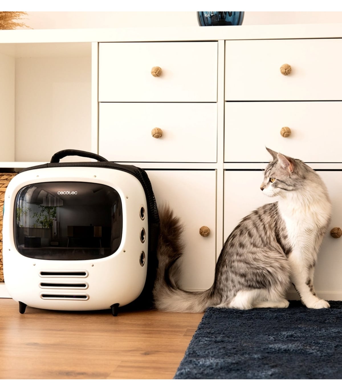 OKazuje się, że nawet w tak potocznym akcesorium jak transporter można pójść o krok dalej. Pumba 1800 Travel Fan zapewnia odpowiedni komfort termiczny podczas transportu zwierzaka, za sprawą wbudowanego systemu wentylacji z dwustopniową możliwością regulacji. O poczucie bezpieczeństwa i dobry nastrój dba również wewnętrzne oświetlenie, które dostosowuje intensywność w środku do oświetlenia panującego na zewnątrz kontenerka. Duże, ale przyciemniane okno wykorzystuje naturalną ciekawość kota, dając mu jednocześnie odpowiedni poziom prywatności i odcięcia od otoczenia. Przy gabarytach 27,6 x 43 x 42 cm transporter jest dość lekki – waży raptem 1,9 kg. Został wyceniony na 379 zł.