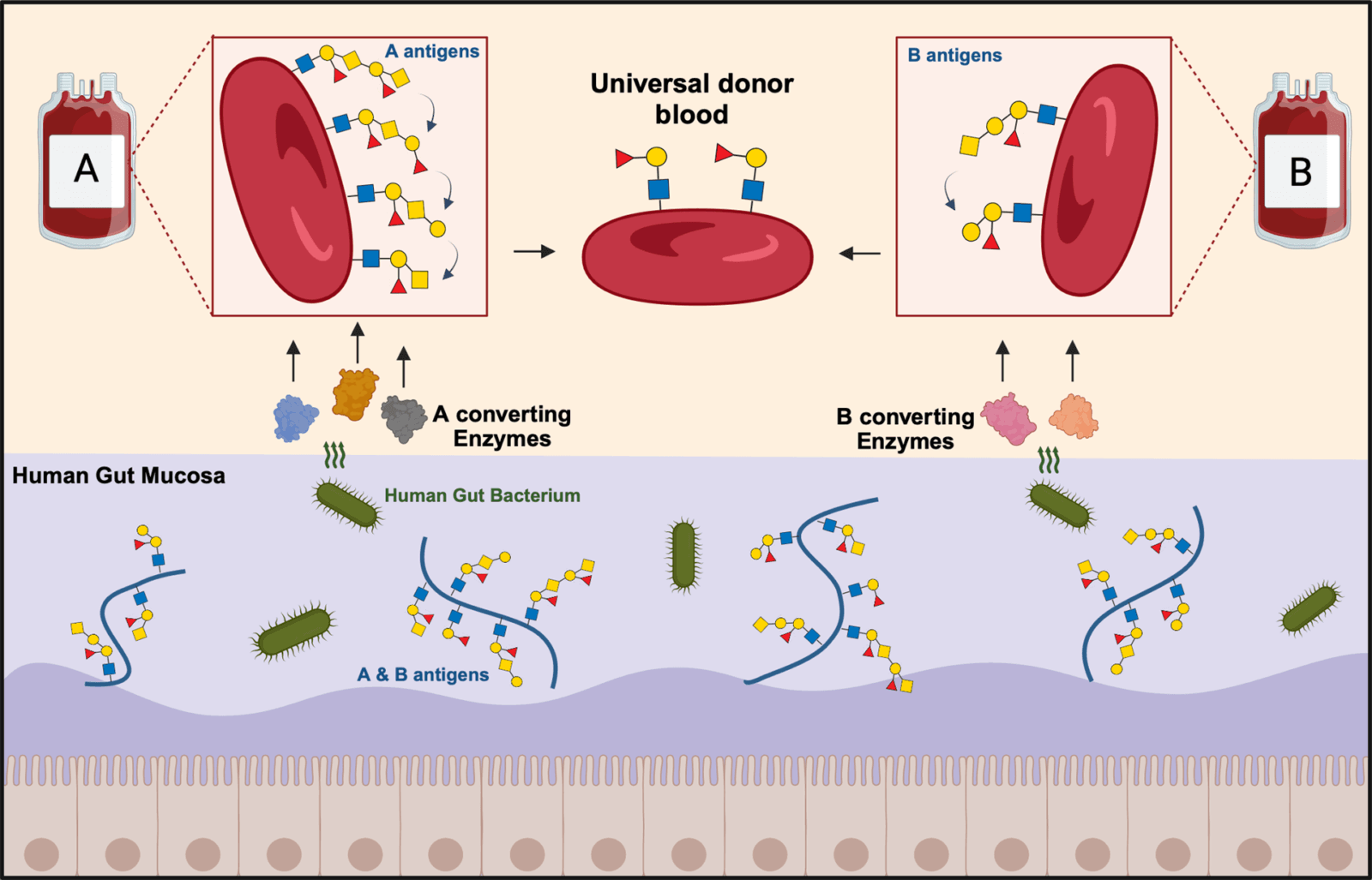 Uczeni przetestowali 24 enzymy bakteryjne na setkach próbek krwi i odkryli, że skuteczniej przekształcają one krew grup A i B w krew uniwersalnych dawców. Ich działanie było skuteczniejsze przeciwko antygenom B niż antygenom A, przy czym jeden z kandydatów zmniejszał antygeny B do poziomów kontroli negatywnej.