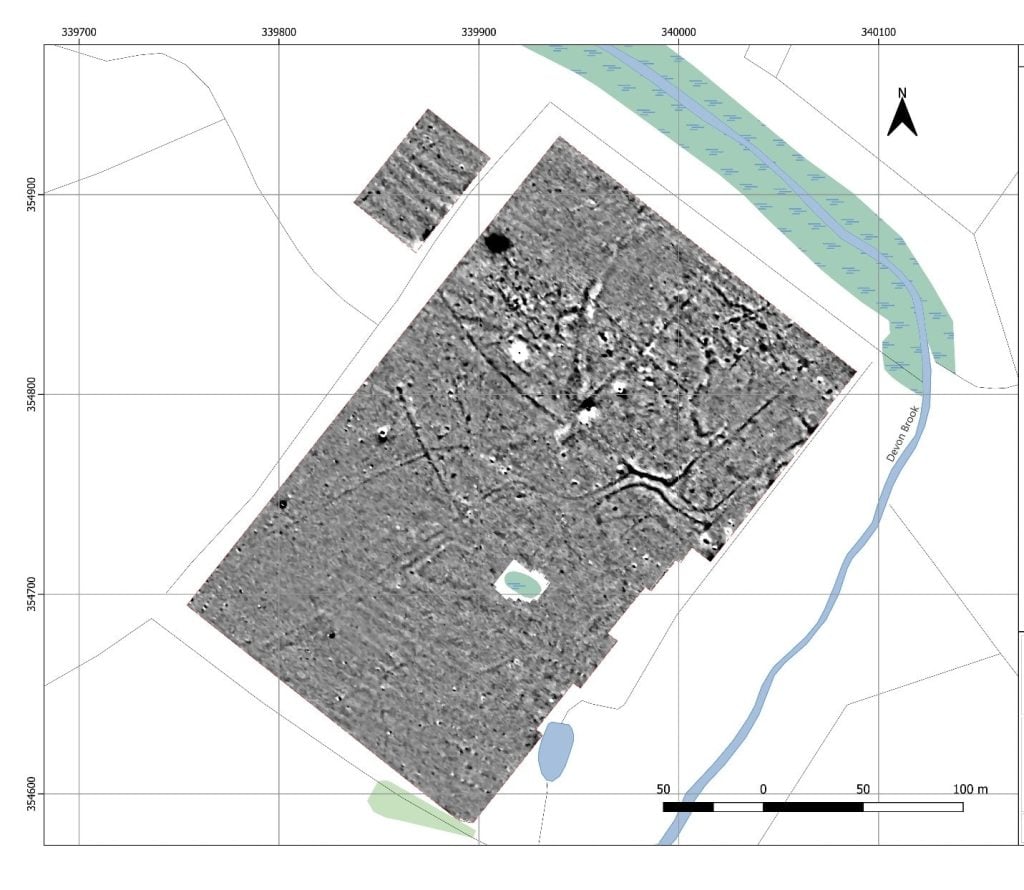 Z czasem przeprowadzone zostały też badania geofizyczne. Na ich podstawie stało się jasne, że na miejscu musiała znajdować się dawniej osada. Świadczy o tym obecność zabudowań oraz sieci dróg. Poza granicami archeolodzy dostrzegli natomiast prostokątne struktury. Dalsze ustalenia powinny pozwolić na stworzenie jeszcze dokładniejszego obrazu tego miejsca.