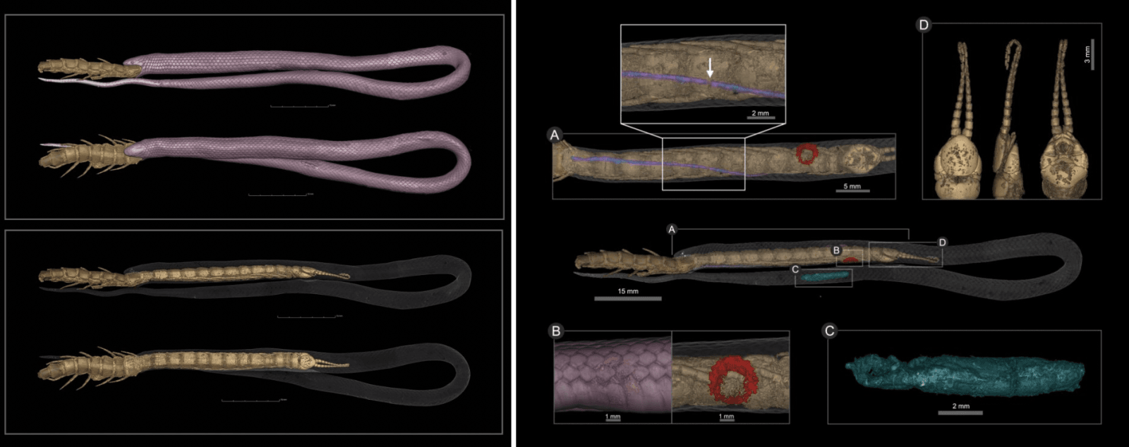 To pierwszy raz, kiedy naukowcy zaobserwowali nawyki żywieniowe węża Tantilla oolitica. Wiadomo, że blisko spokrewnione gatunki polują na skolopendry, ale ponieważ Tantilla oolitica jest tak rzadko spotykany, uczeni nie wiedzieli, czym właściwie się żywi. Badacze z Muzeum Historii Naturalnej na Florydzie przeprowadzili tomografię komputerową “połączonej” pary i opublikowali swoje wyniki w czasopiśmie Ecology.