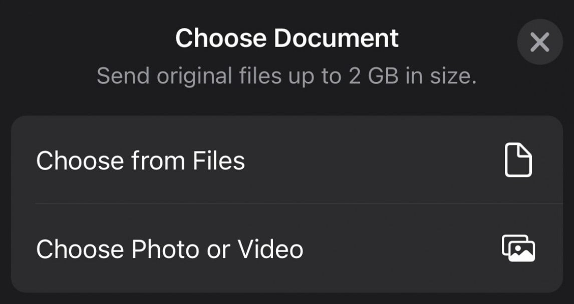 Aby wysłać obraz lub film w oryginalnej jakości, należy kliknąć „+” w oknie czatu, przejść do wysyłania Dokumentów, a następnie kliknąć „Wybierz Zdjęcie lub Film”. Wybrane przez nas pliki zostaną wówczas wysłane w bezstratnej jakości.