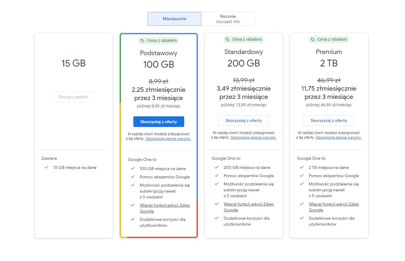 Jeśli akurat stoicie przed koniecznością zmiany urządzenia, możecie też, zamiast kopii zapasowych, wykorzystać transfer bezpośredni. Wbudowane narzędzie WhatsApp Chat Transfer, pozwoli bezproblemowo przenieść dane na nowy smartfon, ale nie jest to już tak szybkie i łatwe, jak wgranie kopii zapasowej, bo oba urządzenia muszą być połączone do tej samej sieci Wi-Fi, no i oczywiście oba muszą być sprawne, a czasem jak wiadomo, dzieje się tak, że wymieniamy telefon z powodu uszkodzenia lub zgubienia poprzedniego. Dlatego ci, którzy wolą mieć spokój i są gotowi za to zapłacić, zawsze jest możliwość wykupienia dodatkowej przestrzeni na Dysku Google, zwłaszcza że obecnie wciąż obowiązuje promocja, w ramach której przez trzy miesiące płacimy zaledwie ułamek ceny pakietu.