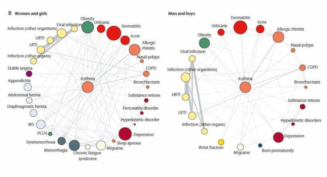 Naukowcy z University College London (UCL) przeanalizowali dane czterech milionów Anglików, by zidentyfikować wzorce chorobowe u tych samych osób. W pracy opublikowanej w Lancet Digital Health, wykorzystano rutynowe dane z rejestrów zdrowotnych do identyfikowania 308 powszechnych chorób psychicznych i fizycznych. Pochodziły one zarówno kobiet, jak i mężczyzn o różnym pochodzeniu etnicznym. Odkryto nieznane wcześniej zależności.