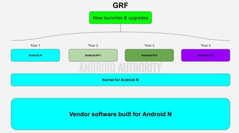 Dzięki GRF cały ten proces znacznie się ułatwił, ponieważ producenci urządzeń mobilnych nie muszą już dostarczać zaktualizowanego oprogramowania firmie od chipsetów z każdą aktualizacją systemu operacyjnego Android, którą chcą wdrożyć. Zamiast tego mogą już dostarczać aktualizacje systemu operacyjnego Android z oryginalnym oprogramowaniem dostawcy, dla którego został zbudowany układ. W efekcie, taki Media tek czy Qualcomm przez trzy lata od premiery smartfona czy tabletu musiał wypuścić jedynie 4 kompilacje systemu/oprogramowania, a nie 10, jak to było wcześniej.