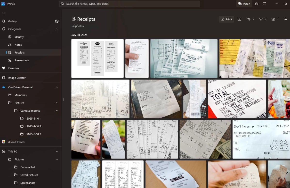 Utworzone kategorie są widoczne w pasku nawigacyjnym po lewej stronie, w rozwijanej liście “Categories”. Co więcej, możesz szybko znaleźć skategoryzowane obrazy za pomocą paska wyszukiwania. Co jest bardzo istotne, algorytm rozpoznaje tekst na obrazach niezależnie od języka, co oznacza, że paragony z zagranicznych podróży również zostaną poprawnie oznaczone.
