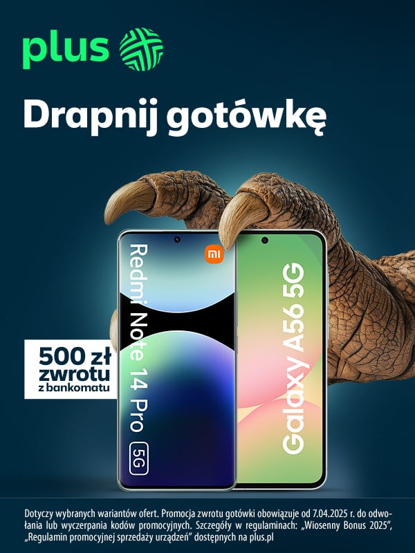 Wiosną mamy dużo planów – porządki, wyjazdy, zakupy. Jeśli macie zamiar w tym czasie zaopatrzyć się w nowy telefon, warto sprawdzić, co przygotował dla was Plus, bo przy okazji możecie też oszczędzić część pieniędzy, które przydadzą się na inne wydatki. Do wyboru mamy dwa modele, oba debiutujące w tym roku, więc to rynkowe nowości. Samsung Galaxy A56 5G to propozycja dla tych, którzy cenią sobie zaawansowane parametry techniczne, nowoczesne rozwiązania i atrakcyjną cenę. Z kolei Xiaomi Redmi Note 14 Pro 5G kusi stylowym designem i wysokiej jakości aparatem fotograficznym, zachowując przy tym przystępny przedział cenowy. Teraz zakup tych modeli staje się jeszcze bardziej opłacalny dzięki wiosennemu bonusowi od Plusa.