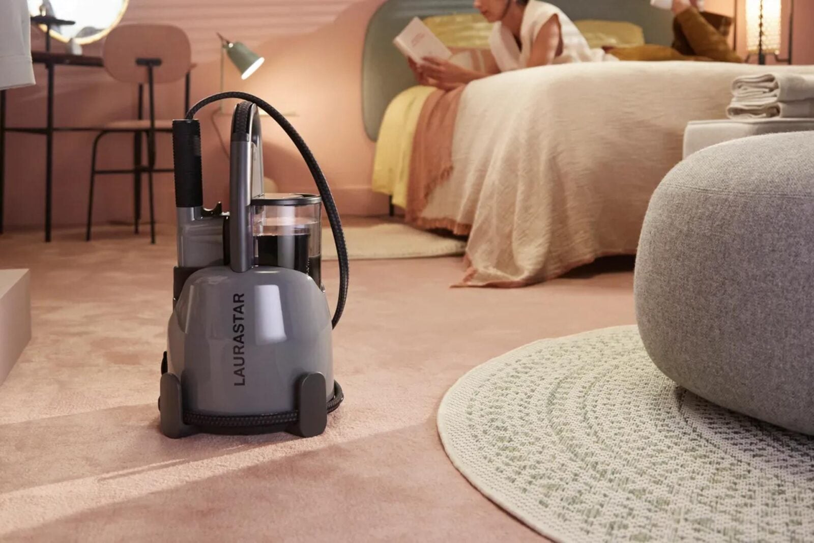 Laurastar Lift Xtra to sprzęt o tyle wyjątkowy, że producent nie daje nam narzędzi do regulowania temperatury czy stopnia wyrzutu pary. Badania pokazały, że konkretne ustawienie jest najskuteczniejsze zarówno przy większości materiałów, jak i przy usuwaniu z nich bakterii i wirusów. Dla lepszego efektu para “pulsuje”, by osiągnąć równomierną dystrybucję nawet przy grubszych warstwach materiału. Zaledwie 3 minuty po uruchomieniu urządzenie jest gotowe do pracy, a dzięki systemowi kartridży z filtrem nie musicie się martwić zastosowaną wodą.