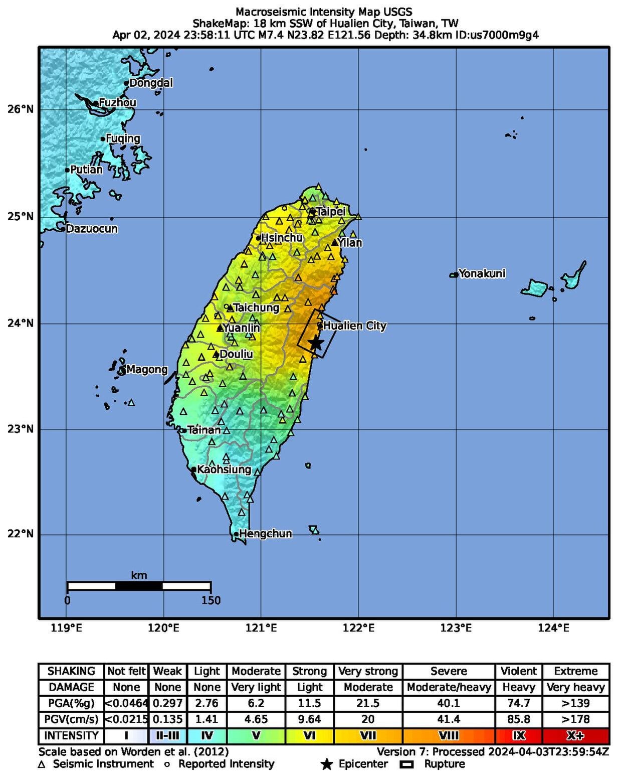 Najnowsze wstrząsy odnotowano na wschodnim wybrzeżu w pobliżu miasta Hualien. Hipocentrum znajdowało się na głębokości 34 kilometrów. Podczas trzęsienia doszło do przesunięcia się mas skalnych wzdłuż podziemnych uskoków. Szacuje się, że mogło ono wynosić maksymalnie ok. 1,2 metra. Wydaje się to z pozoru niewiele, ale potrafiło wygenerować wstrząsy, które zagroziły życiu tysiącom osób.