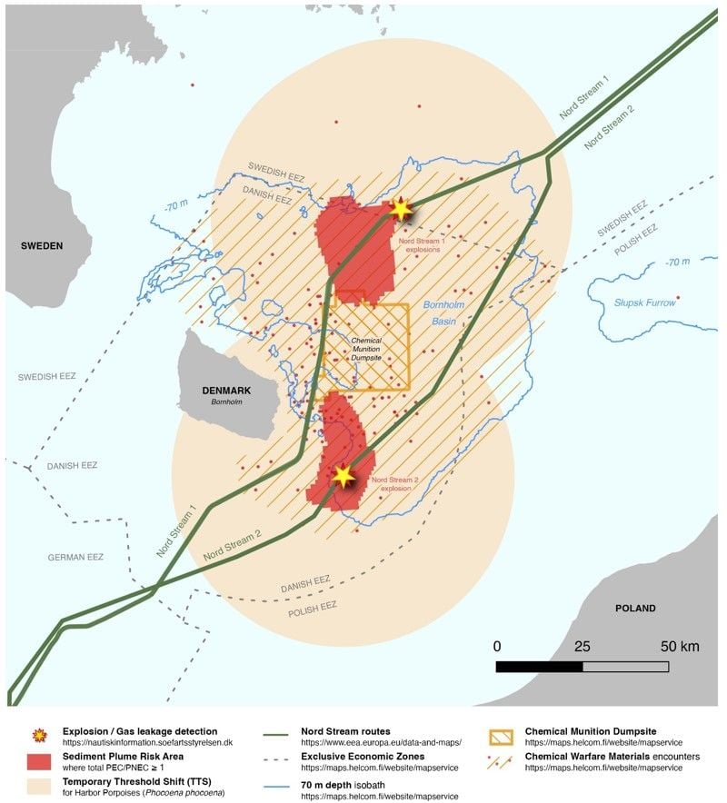 Trzeba zwrócić uwagę na kluczową kwestię. Podczas II wojny światowej Morze Bałtyckie było areną wielu bitew morskich, a na jego dnie spoczywa ogromna liczna odpadów chemicznych. W pobliżu miejsca, gdzie doszło do wybuchów, znajdowało się składowisko broni chemicznej. Osady pokrywające dno morskie są skażone, a ich wzburzenie może doprowadzić do uwolnienia wielu toksycznych substancji.