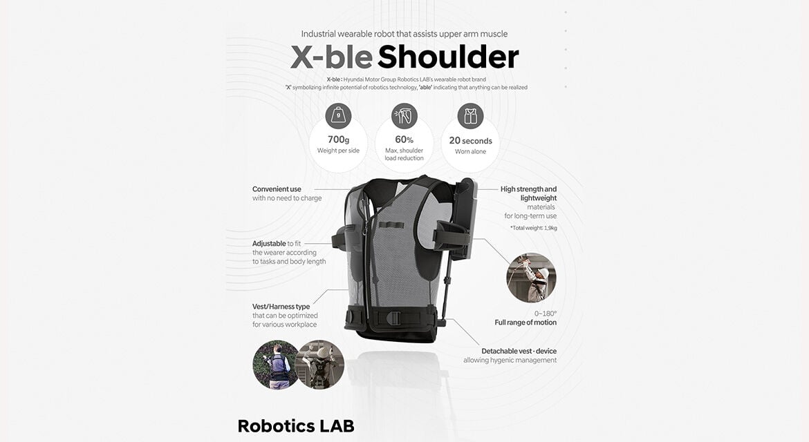 X-ble Shoulder jest odpowiedzią na rosnące potrzeby w zakresie poprawy warunków pracy fizycznej, szczególnie w sektorze produkcyjnym i logistycznym. Projekt został opracowany przez Hyundai i Kia Robotics Lab, specjalizujące się w tworzeniu urządzeń wspierających fizyczne możliwości człowieka.