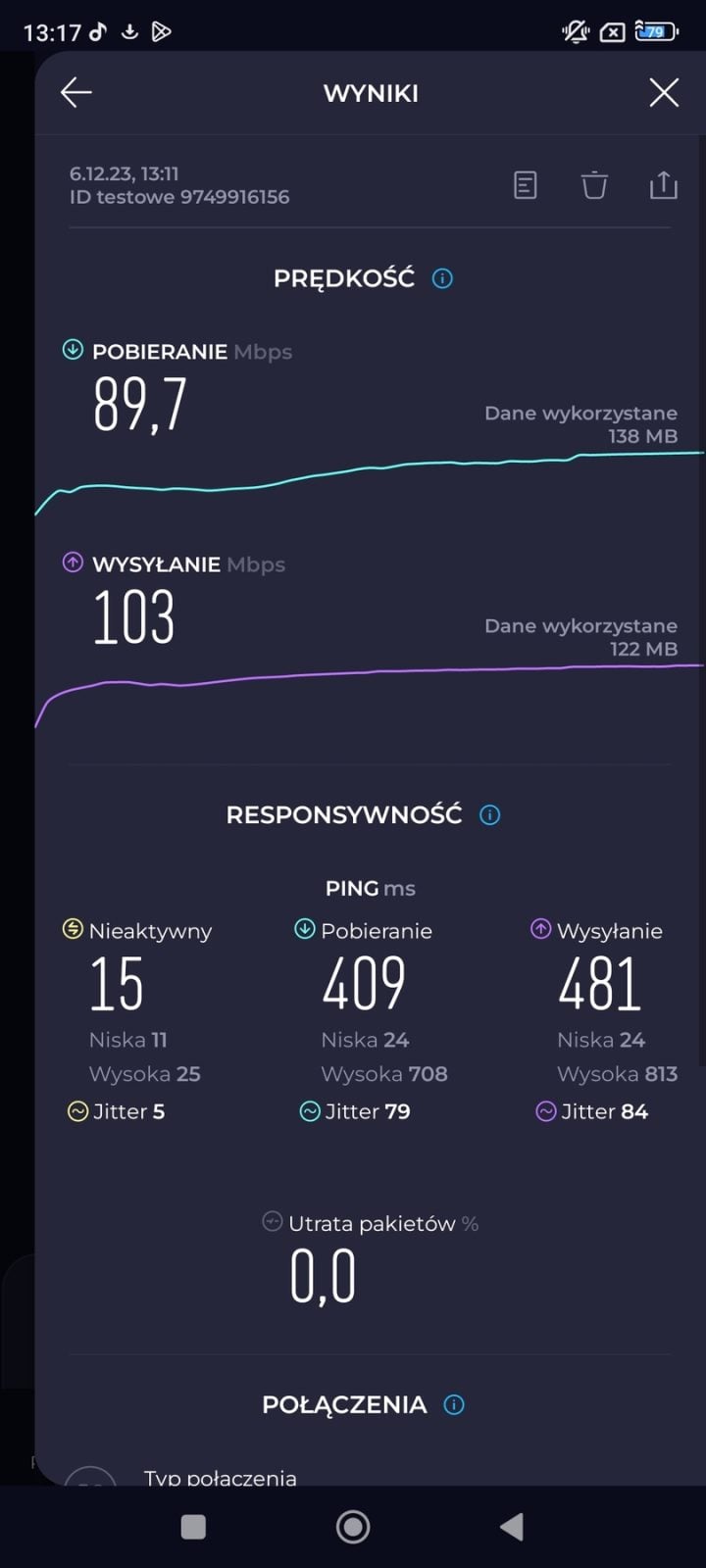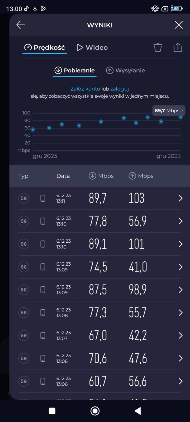 Na początek – internet. Mamy tu oczywiście obsługę sieci 5G i to na całkiem niezłym poziomie – w 10 próbach w programie Speedtest, uzyskałem maksymalnie niespełna 90 Mb/s (pobieranie) i aż 103 Mb/s (wysyłanie danych). Wynik niezły, ale uzyskany w samym centrum Warszawy. W domu (i nie tylko) możemy skorzystać również z Wi-Fi 6.