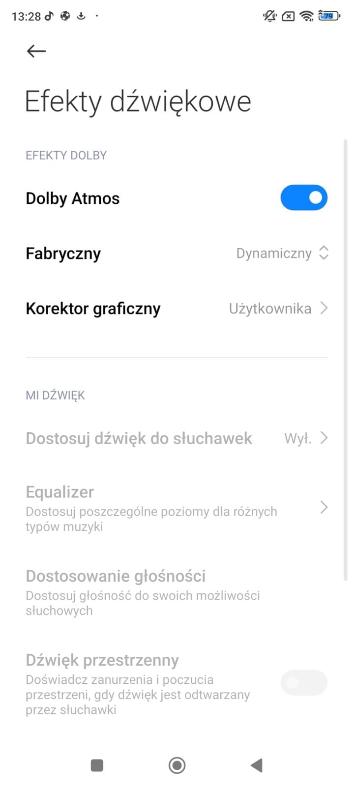 System Dolby Atmos działa zarówno na głośnikach, jak i na słuchawkach, ale szczerze mówiąc w przypadku głośników wg. mnie barwa dźwięku wypada lepiej z wyłączonym tym systemem. Dźwięk jest wtedy co prawda minimalnie mniej przestrzenny, ale zyskujemy słyszalnie na basie, co w przypadku głośników w smartfonach nie zdarza się zbyt często. Oczywiście każdy może poeksperymentować z ustawieniami we własnym zakresie (a jest ich sporo) i odnaleźć barwę dźwięku która mu najbardziej pasuje. Zwłaszcza, że w ustawieniach znajdziemy również manualny equalizer.