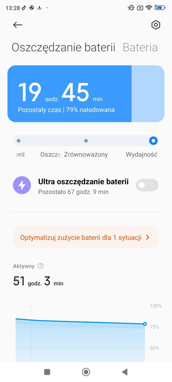 Xiaomi 13T został wyposażony w akumulator o pojemności 5000 mAh. Wystarczy on średnio na 1,5 dnia pracy w cyklu mieszanym lub jeden pełny dzień intensywnej pracy. Także standard.