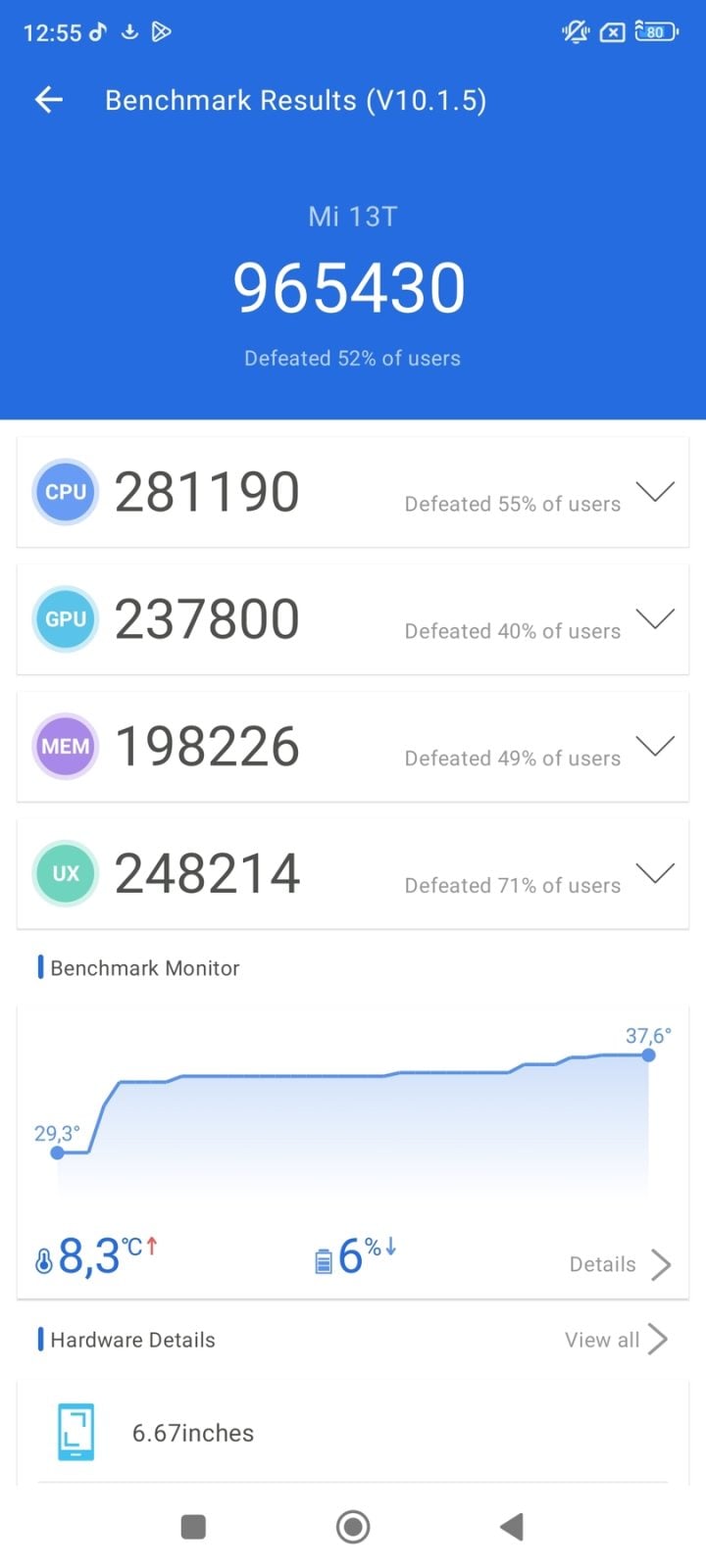 - Antutu Benchmark 10.1.5 – 965 430 pkt