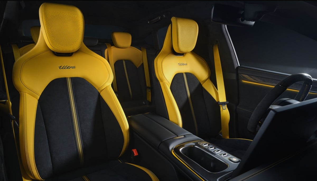 Wnętrze SU7 Ultra to kwintesencja sportowego ducha. Użycie materiałów premium, takich jak włókno węglowe i mikrofiba Alcantara, oraz takie detale jak czerwony przycisk “Boost” na kierownicy, od razu budują atmosferę jak z bolidu Formuły 1. Xiaomi jasno daje do zrozumienia, że SU7 Ultra to nie tylko środek transportu, ale prawdziwa maszyna dla entuzjastów motoryzacji, którzy szukają emocji za kierownicą.