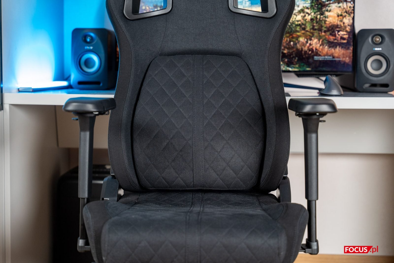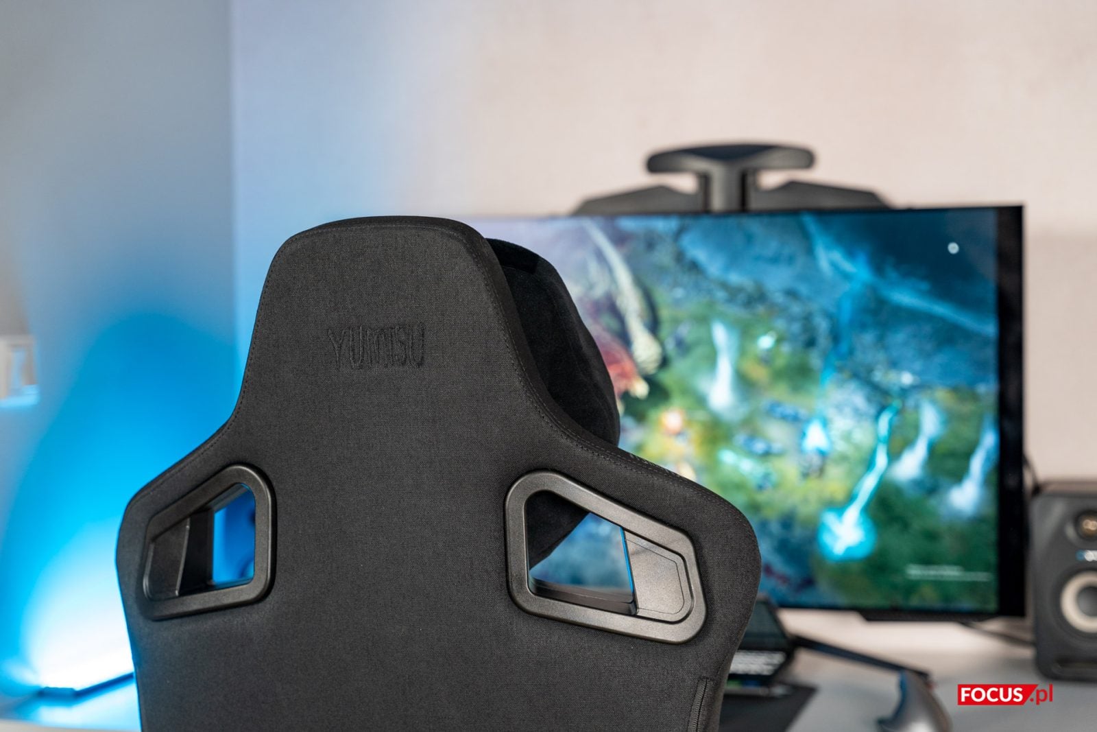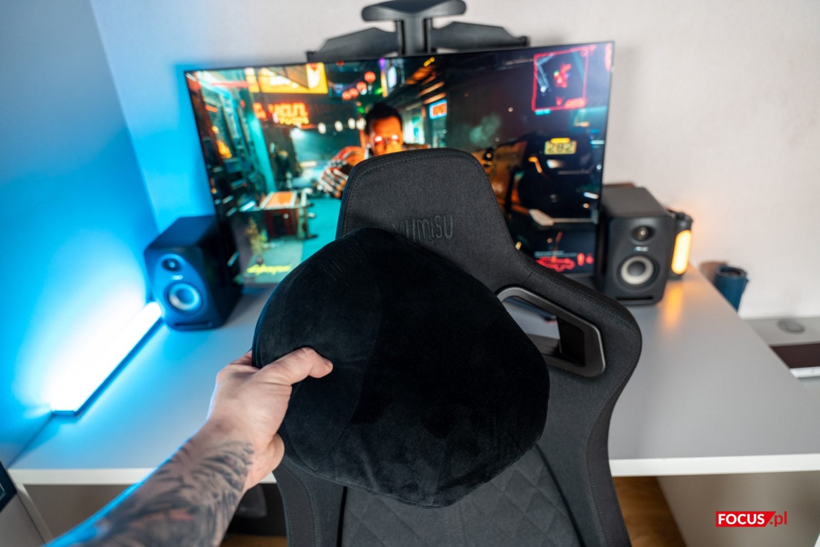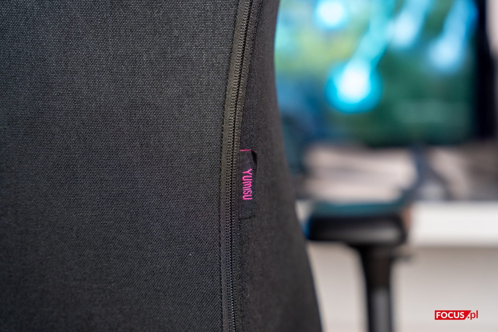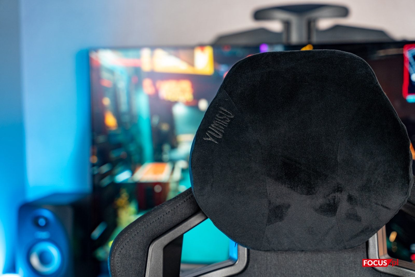 Element, przy którym się zepsułem, to poduszka pod głowę. Według instrukcji powinna być zamontowana na specjalnych pasach, ale instrukcja okazała się uniwersalna do wszystkich foteli firmy. Yumisu 2055 Magnetic, jak z resztą nazwa wskazuje (brawo ja!) ma magnetycznie montowaną poduszkę. Znamy to ze wspomnianych Secret Labów. Poduszka trzyma się oparcia bardzo dobrze i nie przesuwa się w trakcie użytkowania. Wystarczy ją dosłownie przyłożyć. Warto dodać, że Yumisu to prawdopodobnie jedyna polska firma, która korzysta z takiego rozwiązania.
