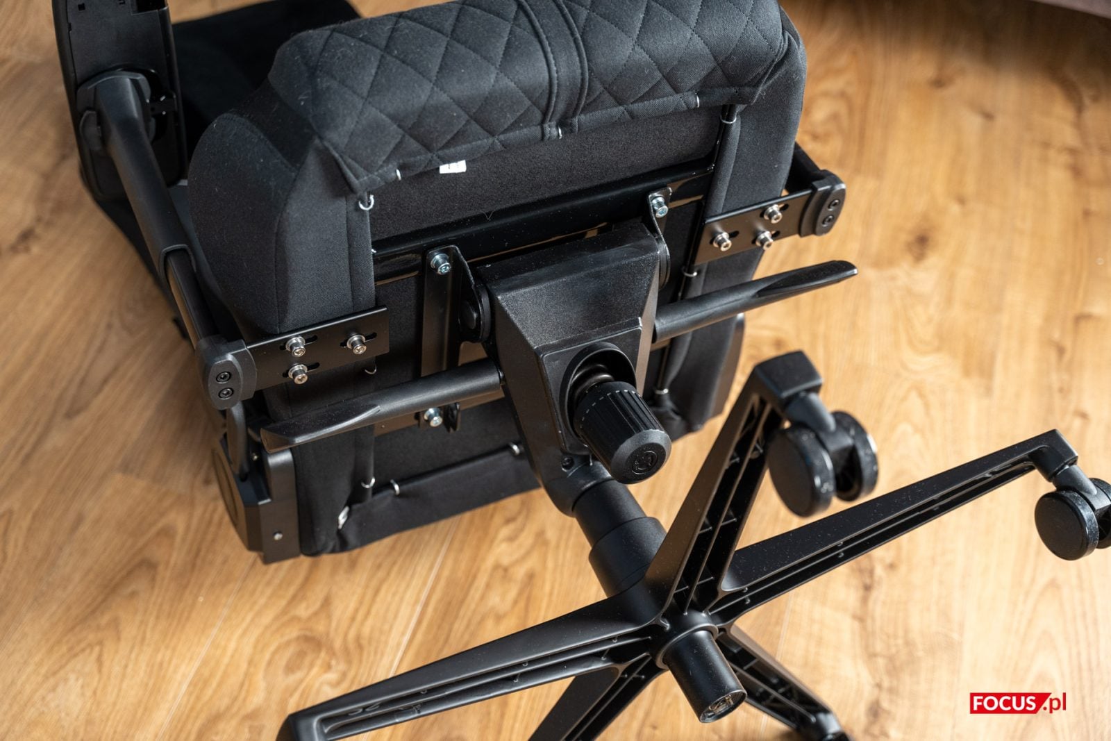 Wszystkie śruby są delikatnie wkręcone, więc nie trzeba ich dopasowywać i szukać w opakowaniu. Wystarczy je wyjąć, dopasować elementy i dokręcić. Druga rzecz to niewielka szyna, która łączy oparcie z siedziskiem. To dosłownie pierdoła, ale znacznie ułatwia samodzielne złożenie fotela. Nie potrzeba do tego drugiej osoby, która pomoże nam utrzymać odpowiedni kąt w miejscu łączenie elementów, a tym zawsze jest największy problem.