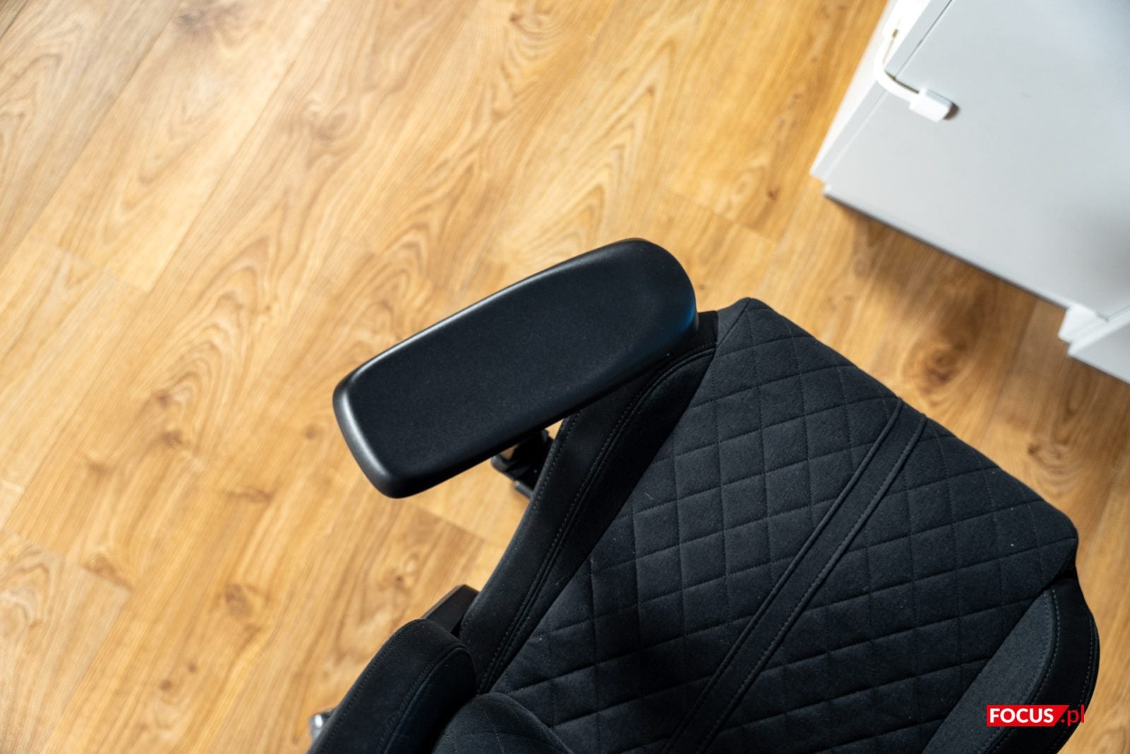 Oparcie rozkłada się do pozycji praktycznie leżącej (do 168 stopni), więc w razie potrzeby krótka drzemka jest w pełni możliwa. Podłokietniki mają regulowaną wysokość i można je delikatnie obracać, ustawiają po skosie.