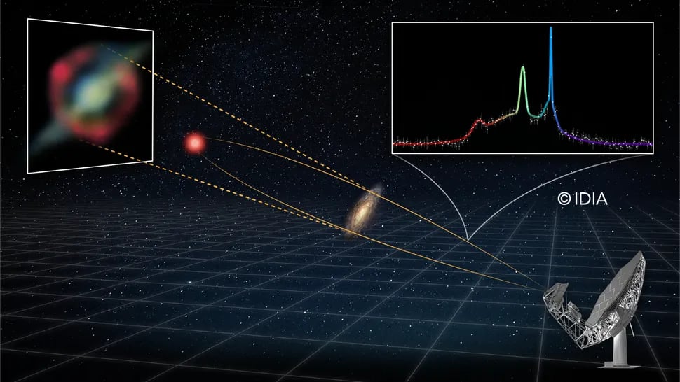 Cały ten sygnał nie byłby tak efektowny, gdyby nie jeszcze jeden kosmiczny trick: soczewkowanie grawitacyjne. Po drodze między nami a źródłem znajduje się inna galaktyka, której masa zakrzywia czasoprzestrzeń i wzmacnia światło oraz fale radiowe pochodzące z dalszego obiektu. Einstein przewidział taki efekt dawno temu, ale astronomia wciąż potrafi wyciągać z niego nowe korzyści. W tym przypadku grawitacja zachowała się jak naturalny teleskop, dobudowany do już istniejącego teleskopu na Ziemi.