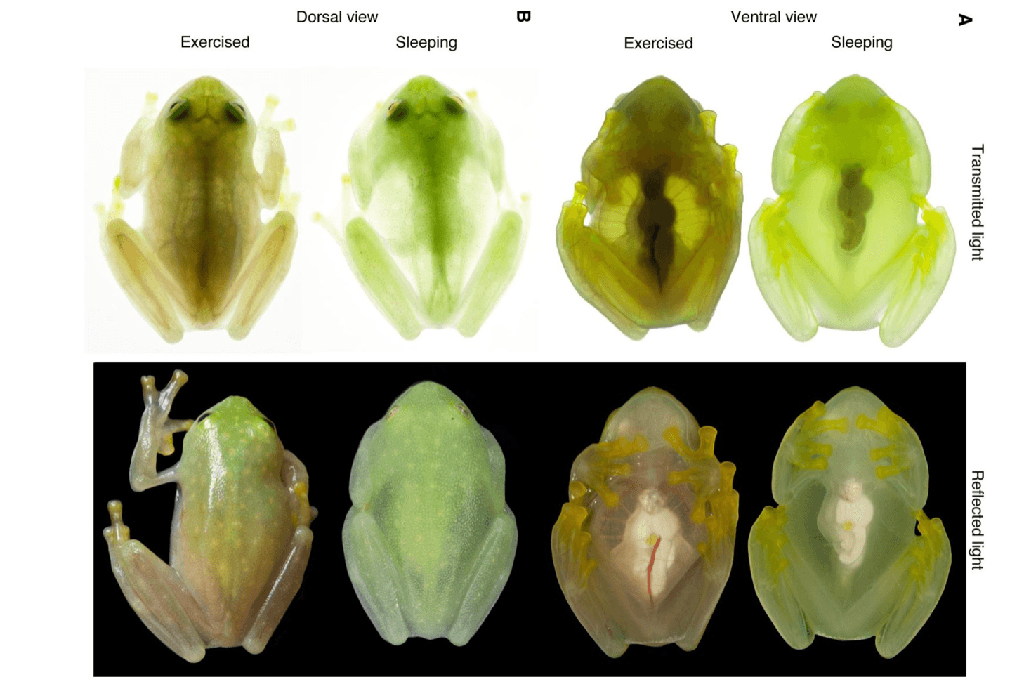 Hyalinobatrachium fleischmanni, zwane także “żabami szklanymi” (ang. glass frog), stają się przezroczyste w konkretnej sytuacji – podczas odpoczynku. Istnieje głęboko zakorzeniony mechanizm biologiczny, który sprawia, że erytrocyty są zabierane z krwiobiegu i ukrywane w wątrobie. Szczegóły opisano w czasopiśmie Science.