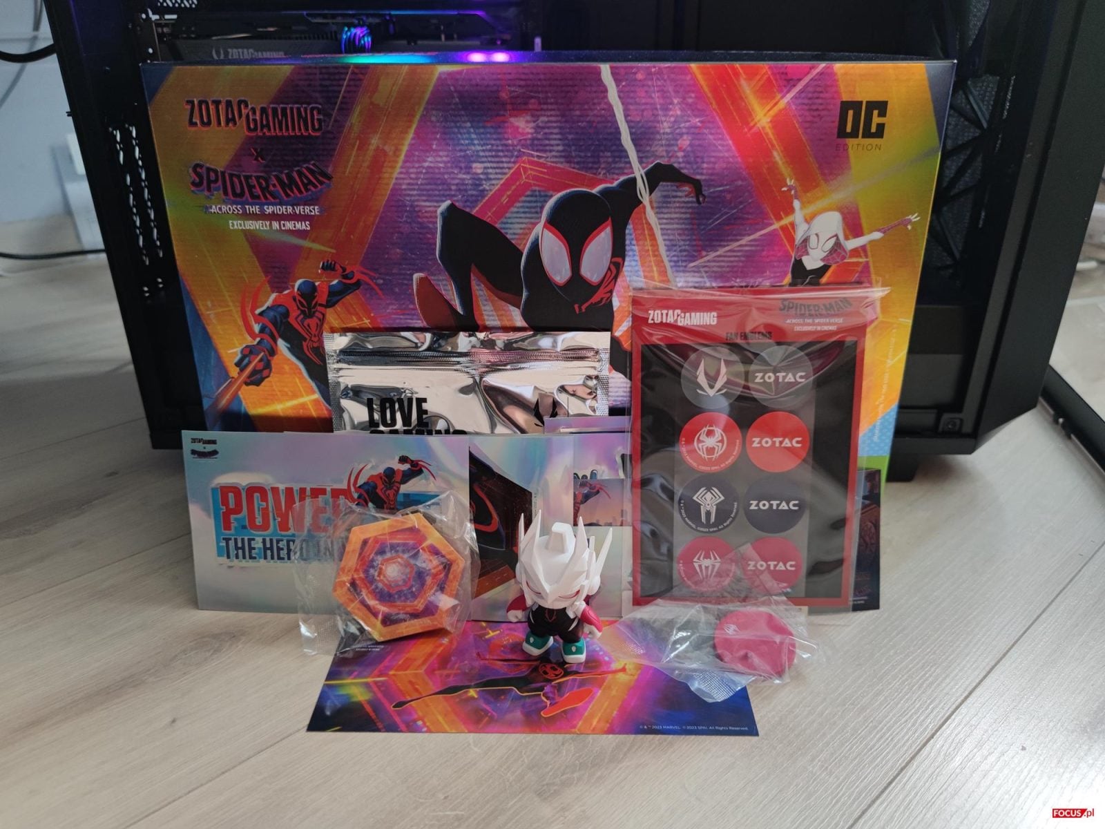 Rzadko kiedy zdarza się, aby można było kupić specjalną edycję karty graficznej nawiązującej do bohatera filmu. Zotac Gaming wszystkich zaskoczył i zaprezentował całą serię grafik w edycji Spider-Mana. W zestawie otrzymamy naklejki (w tym na wentylatory karty graficznej, kartę Ztorm czy losowo wybraną figurkę. Pozwala to na spersonalizowanie nie tylko karty graficznej, ale również całego komputera. Możecie choćby na obudowę nakleić tematyczne naklejki, co zdecydowanie zmieni jej wygląd. Samą figurkę spokojnie możecie położyć na samej karcie czy w obudowie np. na piwnicy, co będzie Wam przypominało o wyjątkowej edycji. Jeśli więc jesteście fanami Spider-Mana to musicie kupić omawiany model, albo jakikolwiek z całej serii kart graficznych.
