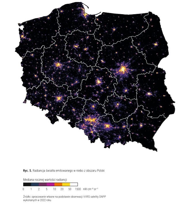 Zanieczyszczenie światłem w Polsce staje się coraz poważniejsze