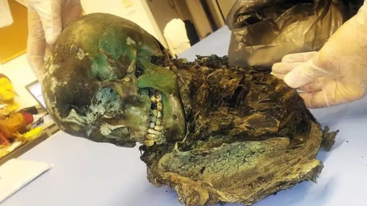 Rozwiązanie tajemnicy kryło się w miedzianym sarkofagu, w którym złożono ciało. Metal ten nie tylko nadał szczątkom charakterystyczną barwę, lecz dodatkowo zainicjował skomplikowany proces przemian chemicznych. Miedź zadziałała jako naturalny środek antybakteryjny, hamując rozwój mikroorganizmów i spowalniając rozkład tkanek. Mechanizm okazał się jednak znacznie bardziej złożony. Kwasy organiczne uwalniane podczas rozkładu ciała powodowały korozję miedzi, uwalniając ruchome związki tego metalu. Substancje te przenikały głęboko w struktury miękkie i kości, prowadząc do unikalnej transformacji. Jony miedzi zaczęły stopniowo zastępować wapń w układzie kostnym. Naukowcy określają to zjawisko mianem „mineralnej edycji” kości. Na powierzchni skóry wytworzyła się patyna, czyli charakterystyczna zielonawa warstwa będąca produktem korozji miedzi. To właśnie ona odpowiada za niezwykły wygląd mumii, który od pierwszego momentu przykuwał uwagę odkrywców.