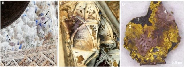 Jak twierdzą naukowcy stojący za publikacją dostępną w Science Advances, prawdopodobnie udało im się zrozumieć, skąd wziął się cały ten fenomen. Za ustaleniami w tej sprawie stoją Carolina Cardell i Isabel Guerra z Uniwersytetu w Granadzie. Jako że złoto jest jednym z najmniej reaktywnych metali, to powinno przetrwać próbę czasu. Jest przecież odporne na światło słoneczne, wilgoć, zanieczyszczenia powietrza i zmiany temperatur. W przypadku Alhambry cienkie płatki złota nałożone na arkusze cyny zostały wykorzystane do wykonania zdobień. Z czasem ich kolor zmienił się na purpurowy, dlatego w XIX wieku ściany pokryto białą powłoką gipsową.