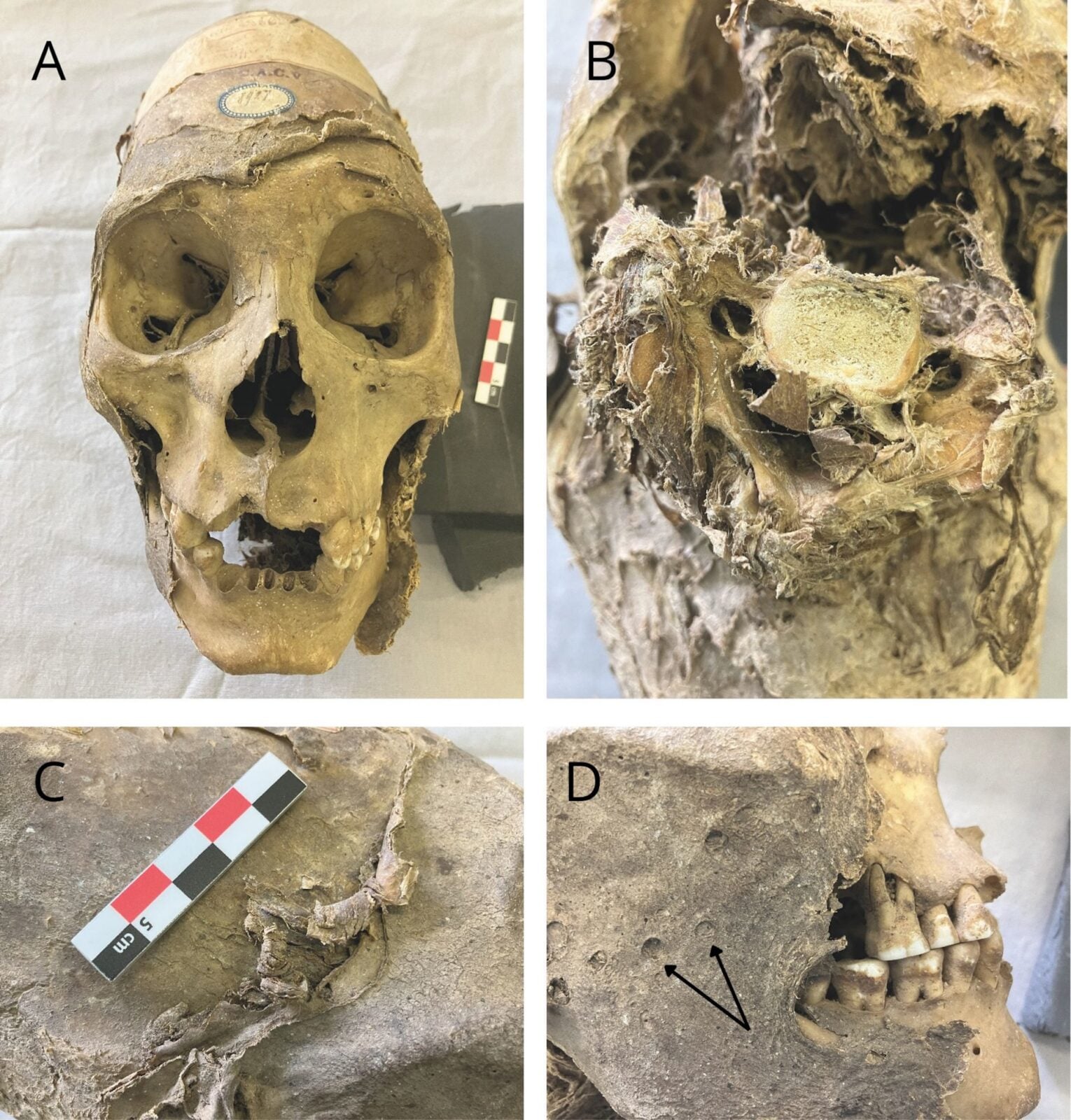 Najbardziej intrygujący aspekt mumii to połączenie dwóch różnych praktyk modyfikacji ciała. Obok celowej deformacji czaszki widoczne są ślady niedokończonej trepanacji. Takie połączenie jest wyjątkowo rzadkie w materiale archeologicznym. Deformację wykonano we wczesnym dzieciństwie poprzez ciasne wiązanie głowy, co nadało jej charakterystyczny stożkowaty kształt. Z kolei trepanacja, choć rozpoczęta, nigdy nie została dokończona – nacięcia penetrują zewnętrzne warstwy kości, lecz nie docierają do wnętrza czaszki. Julia Gresky, paleopatolog z Niemieckiego Instytutu Archeologicznego, przyznaje, że nigdy wcześniej nie spotkała podobnego przypadku. Brak widocznych urazów sugeruje, że zabieg mógł mieć charakter rytualny a nie terapeutyczny.