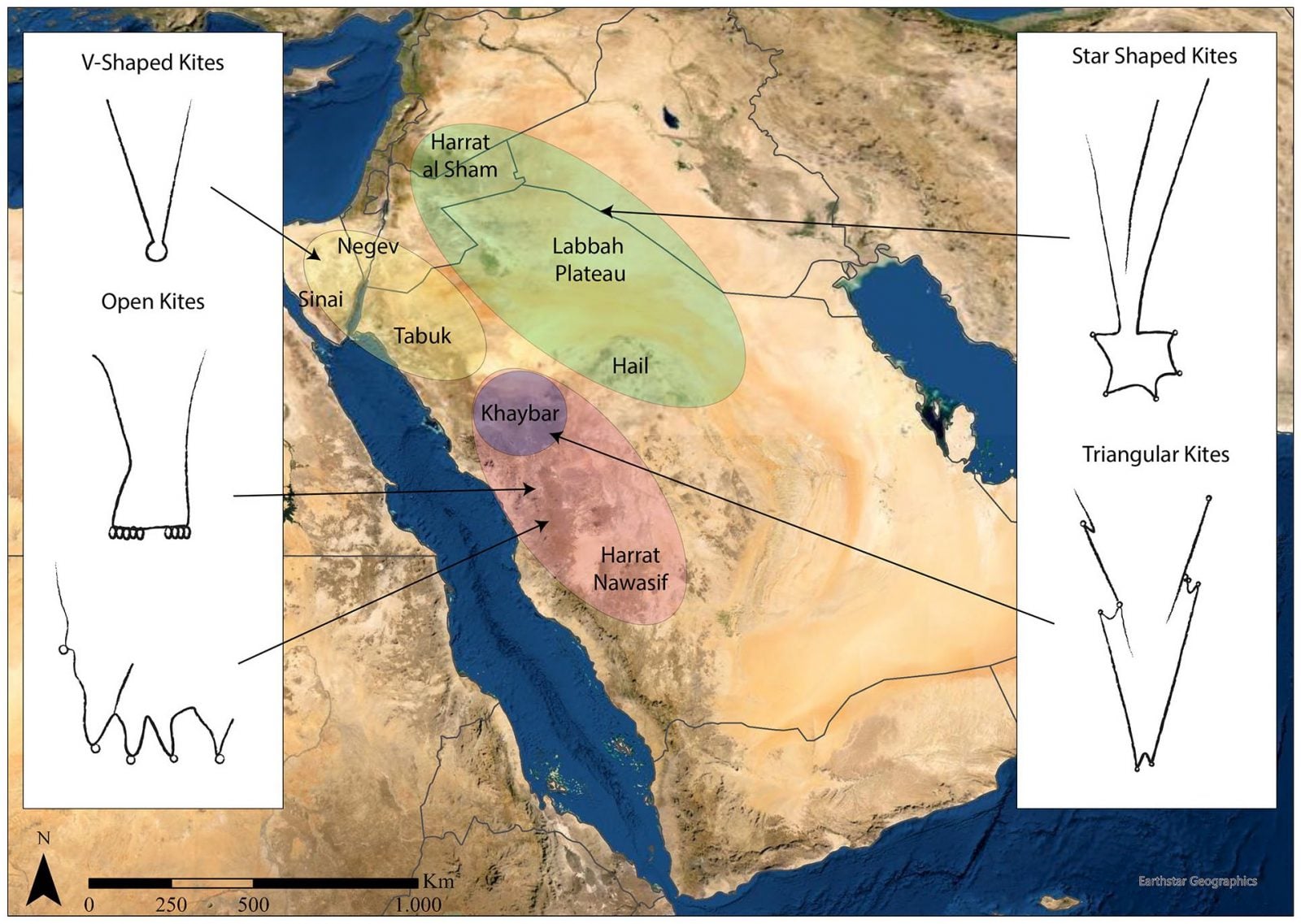Naukowcy z Oksfordu odkryli ponad 350 takich struktur łowieckich na terenie pustyni Wielki Nefud w Arabii Saudyjskiej oraz w południowym Iraku. Większość z nich nie była nigdy wcześniej znana, a znaki z Iraku są pierwszymi odkrytymi w tym kraju. Podobne struktury już wcześniej znaleziono w Syrii i Jordanii, ale jeszcze nikt nie badał terenów położonych bardziej na południe.