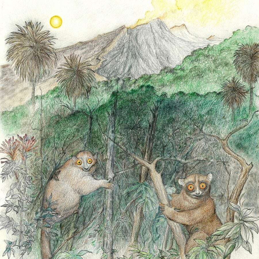 Omomyidy posiadały również bardzo duże oczodoły, a ich pysk był wyraźnie skrócony. Przypominały bardzo współczesne lemury i wyraki. Te drugie są dzisiaj najmniejszymi naczelnymi żyjącymi na Ziemi. Nasze eoceńskie „małpy” zamieszkiwały tereny Ameryki Północnej, Europy i Azji przez całą epokę eocenu od 56 do 34 milionów lat temu.